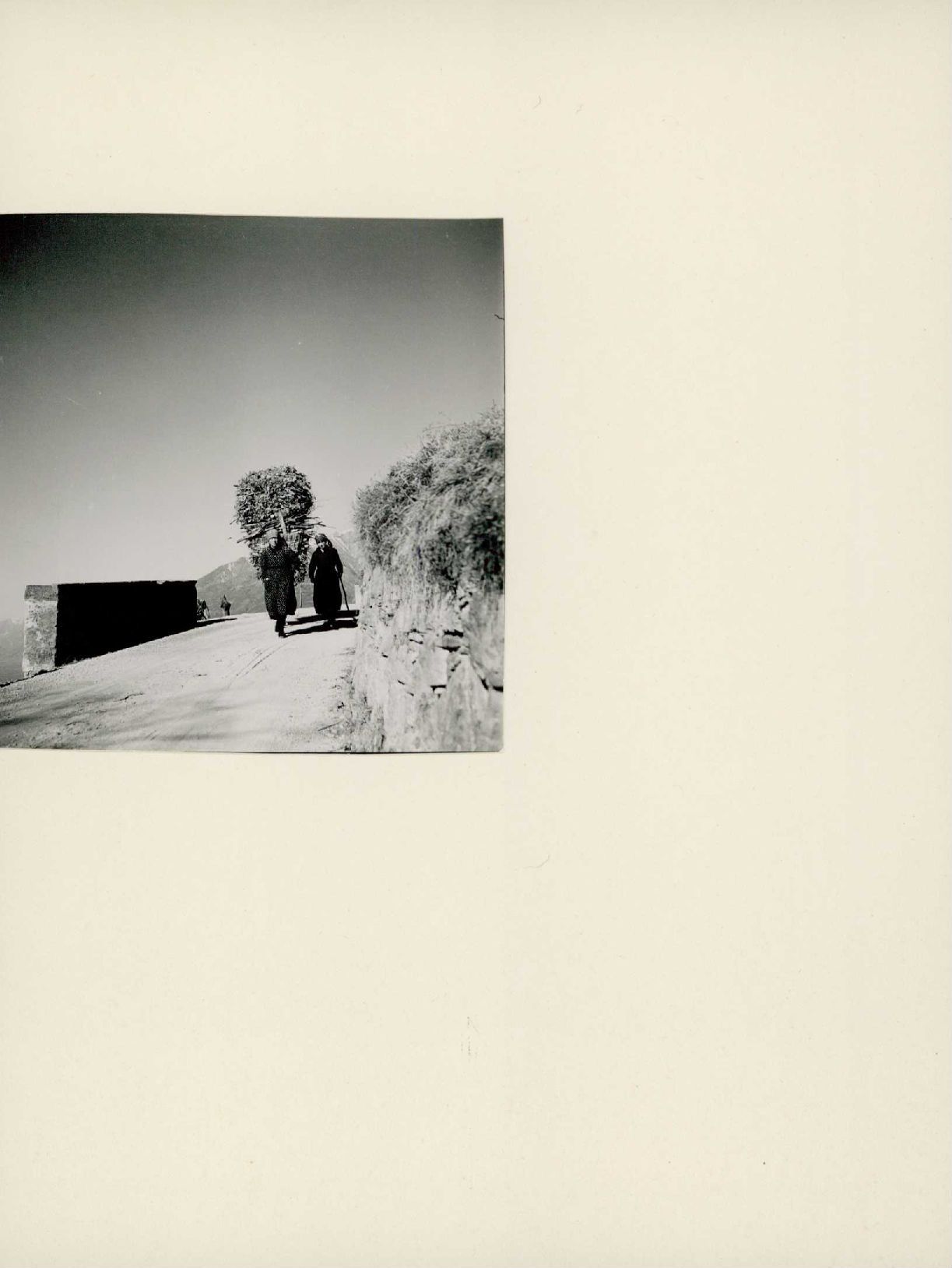 [Val Morobbia: Frau transportiert Holz mit einem Tragkorb]
