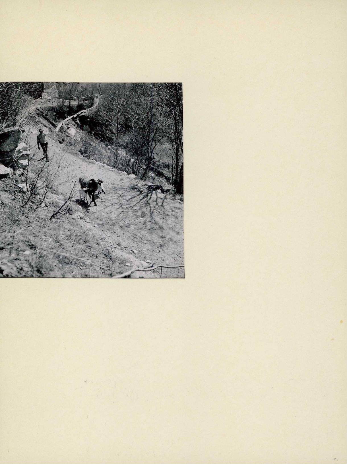 [Bauer mit Ziegen auf Bergweg]
