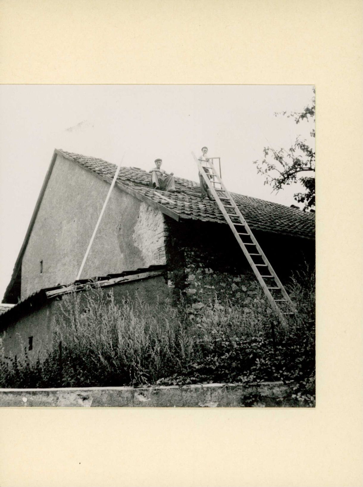 [Zwei Männer auf Hausdach]