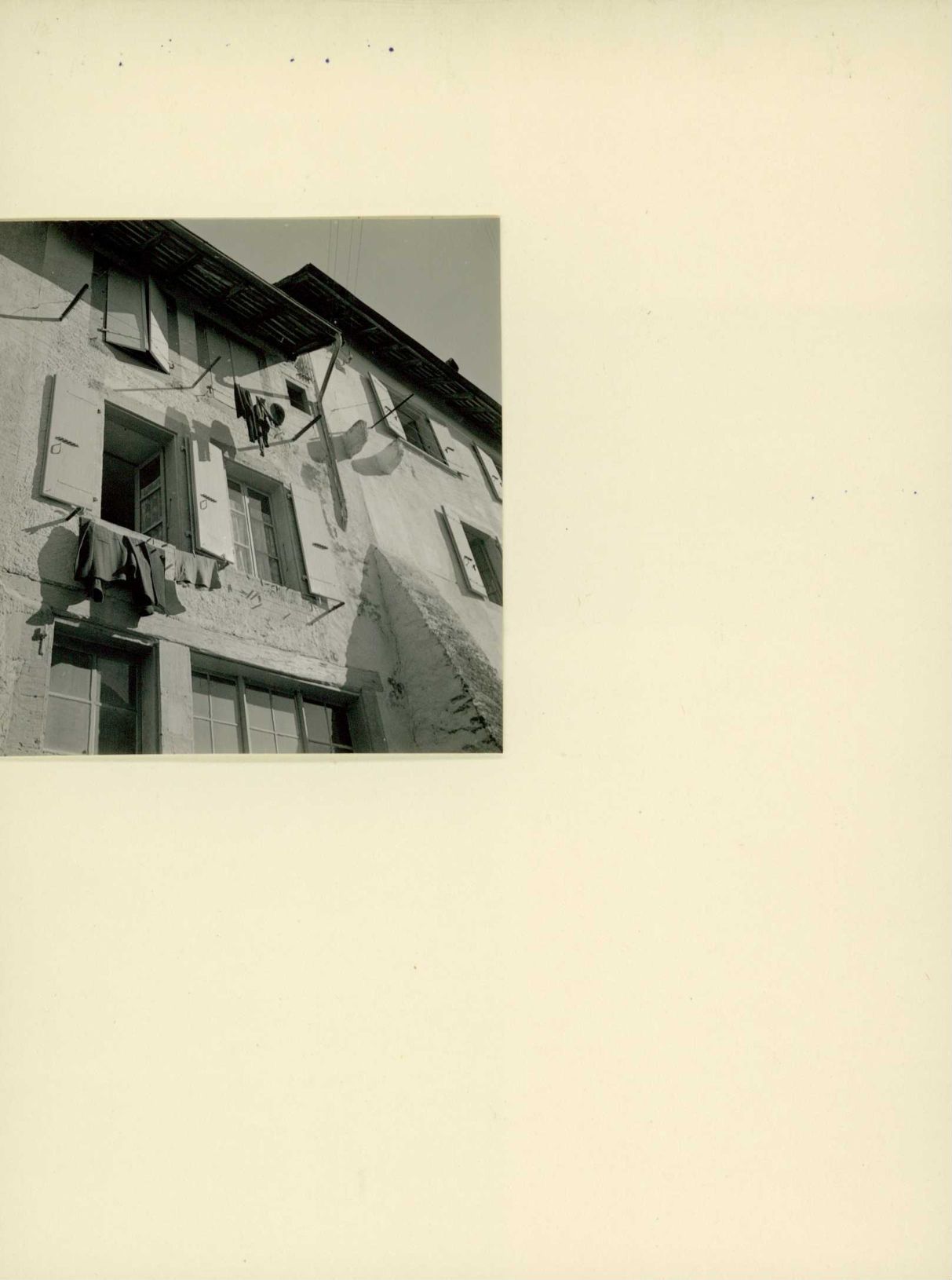 [Wäsche hängt zum Trocknen vor dem Fenster]