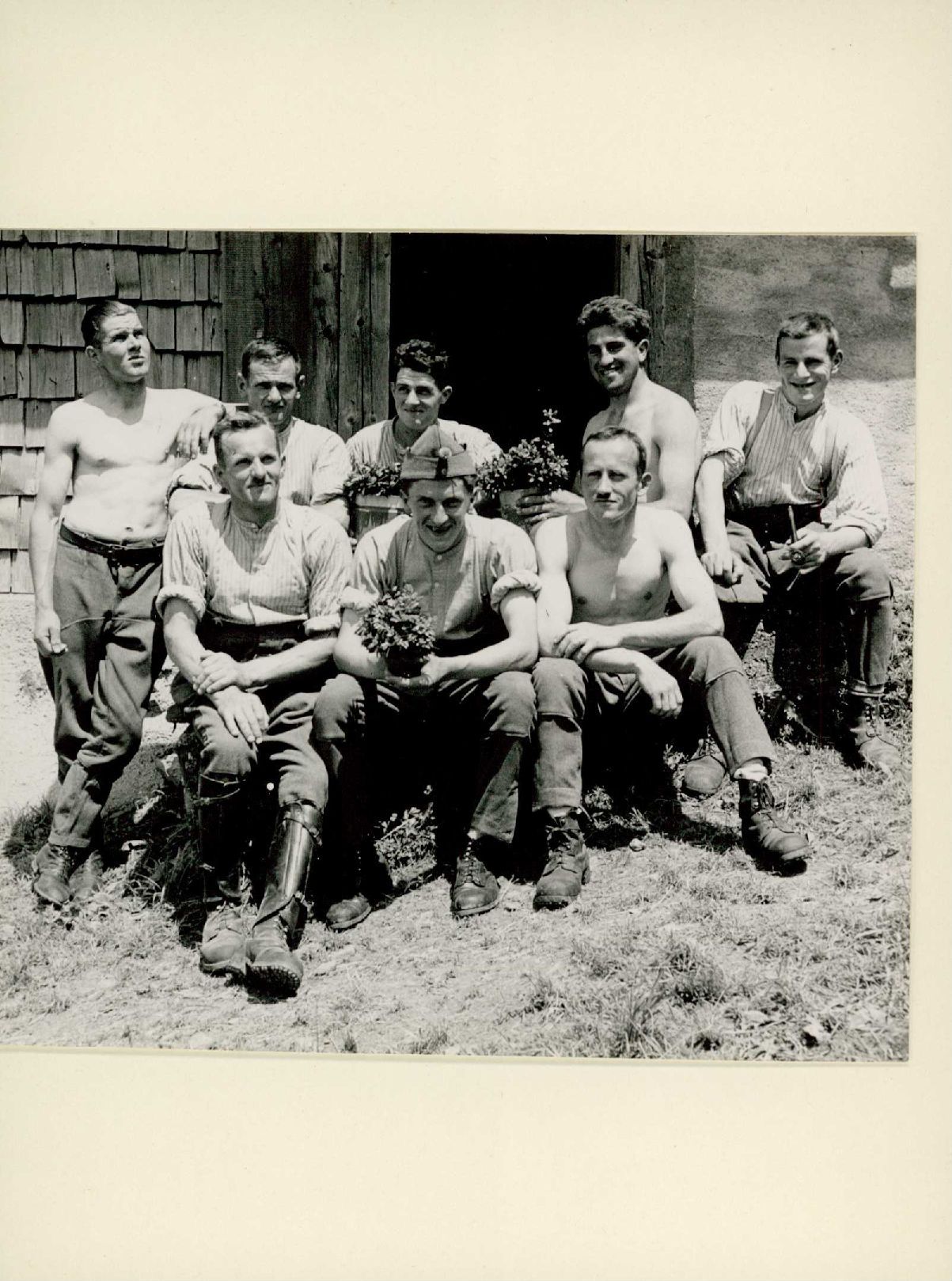[Angehörige der Schweizer Armee vor Alphütte]