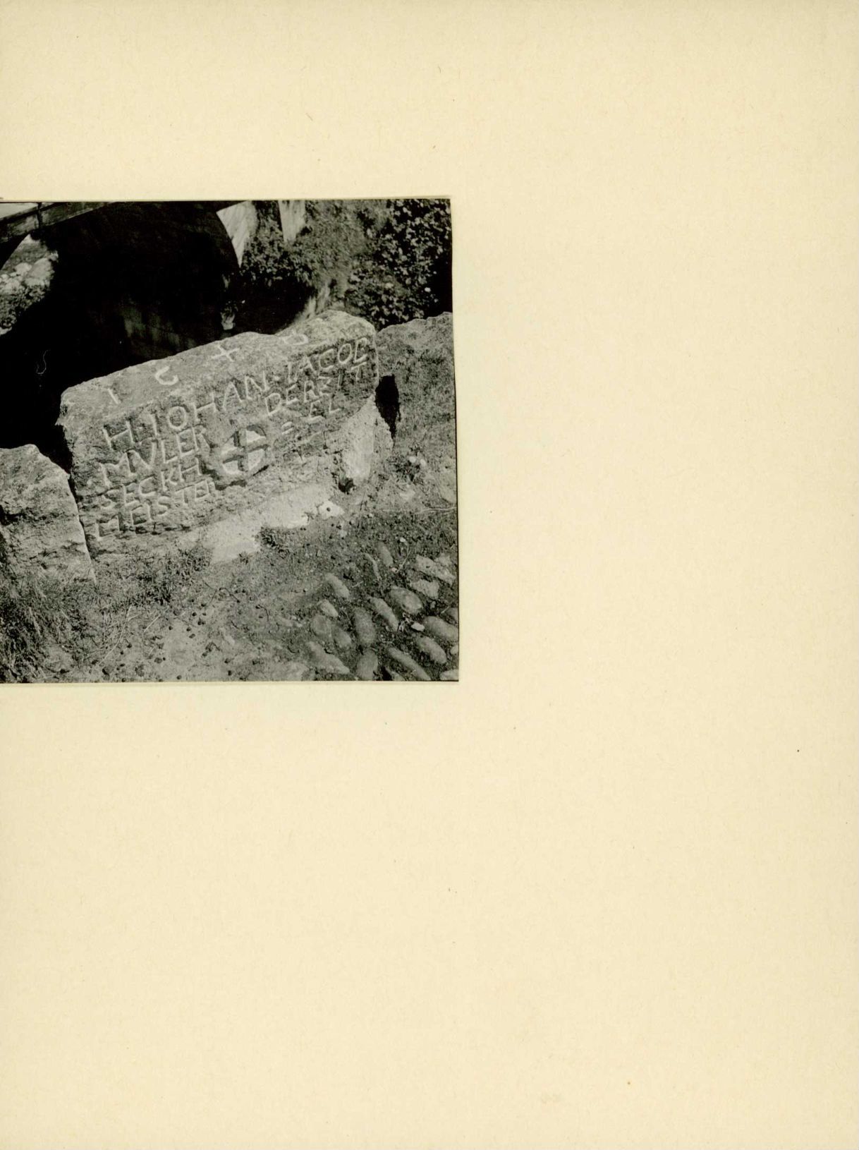 [Stein mit Inschrift auf Brücke: 1821 H. Johan Jacob Müler derzit Seckhelmeister]