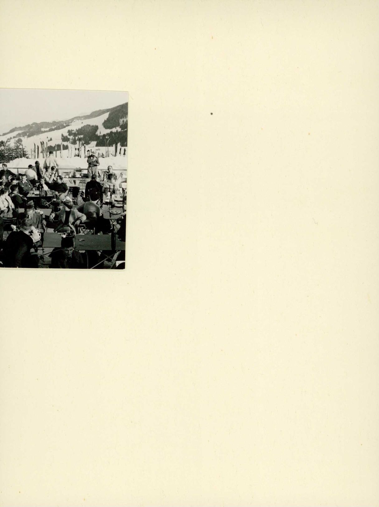 [Sonnenterrasse eines Bergrestaurants in Skigebiet]