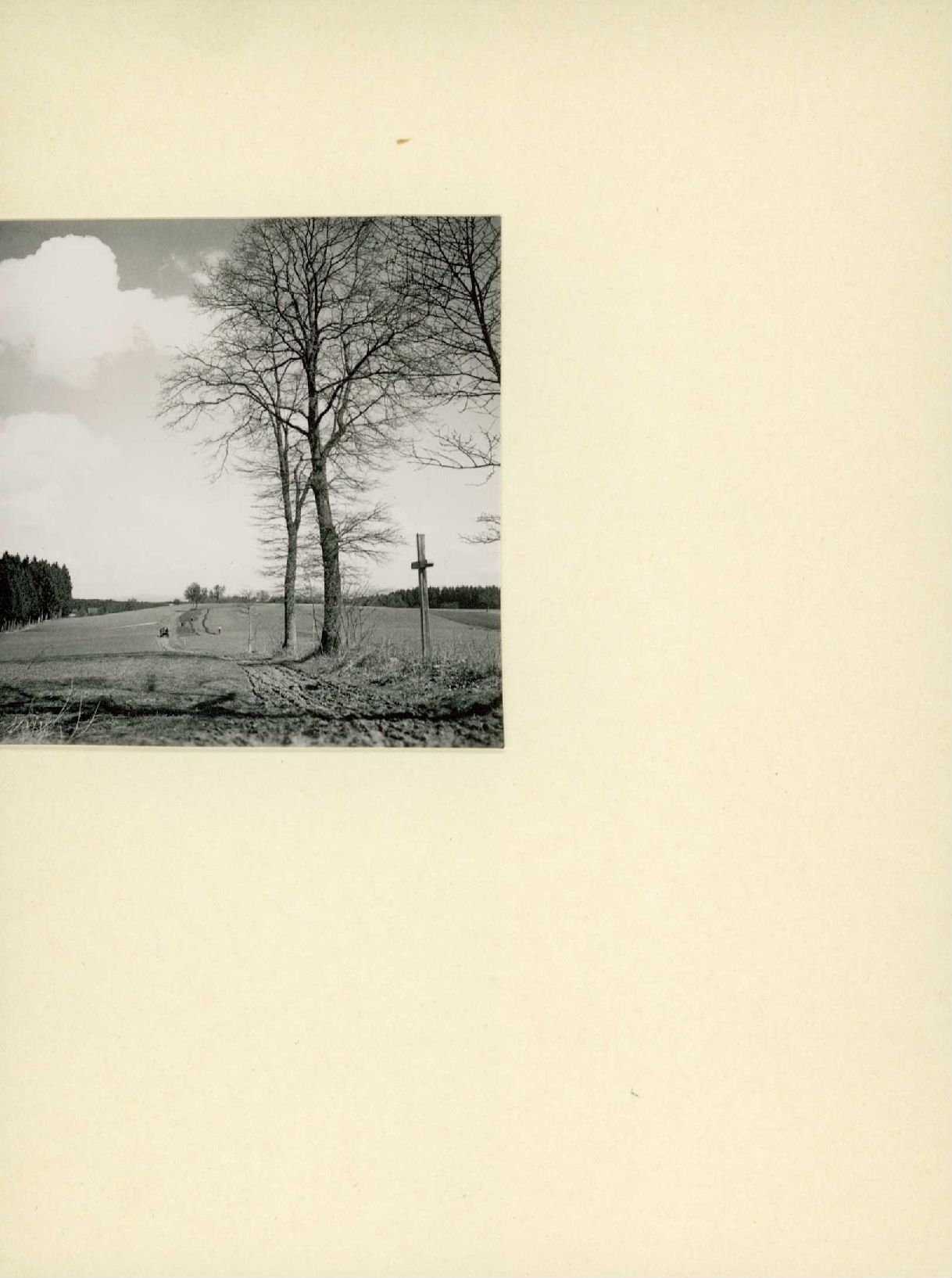 [Feldkreuz und Bäume an Feldweg]
