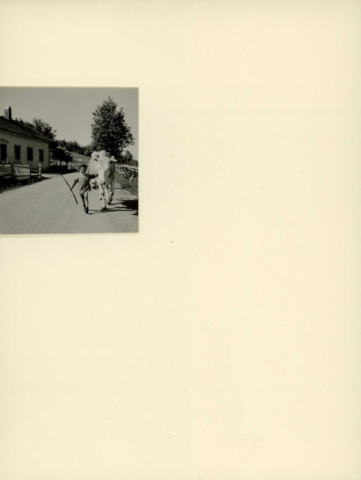 [Kinder mit Kuh auf der Strasse]