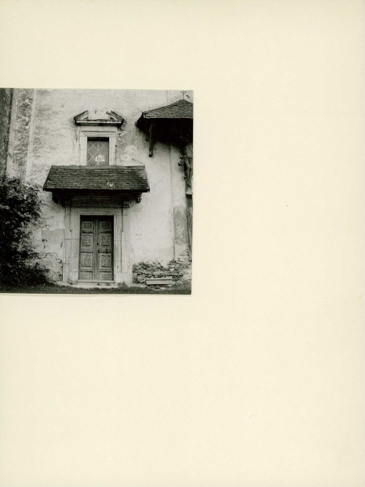 [Seiteneingang der Kapelle Mariä Empfängnis mit grossem Kruzifix]