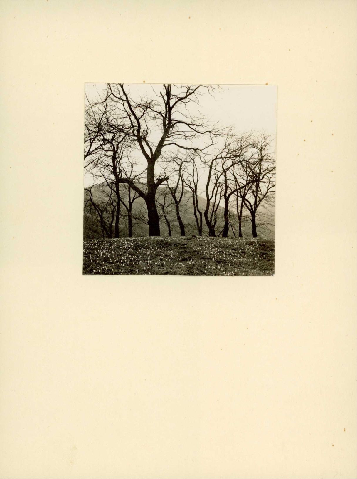[Lichter Wald im Frühling, Krokusse auf der Wiese]