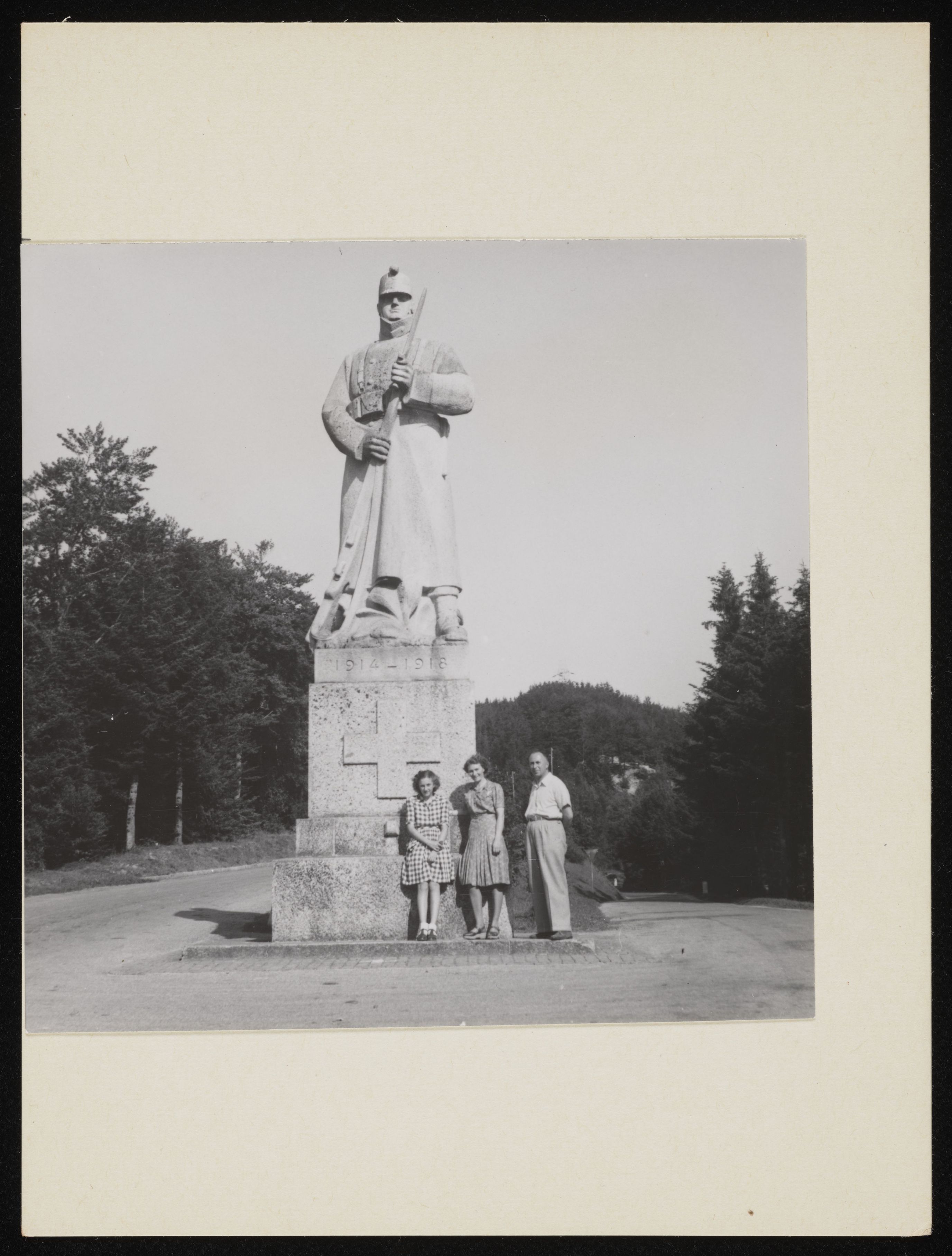 [Familie Brunner vor dem Soldatendenkmal in Les Rangiers]