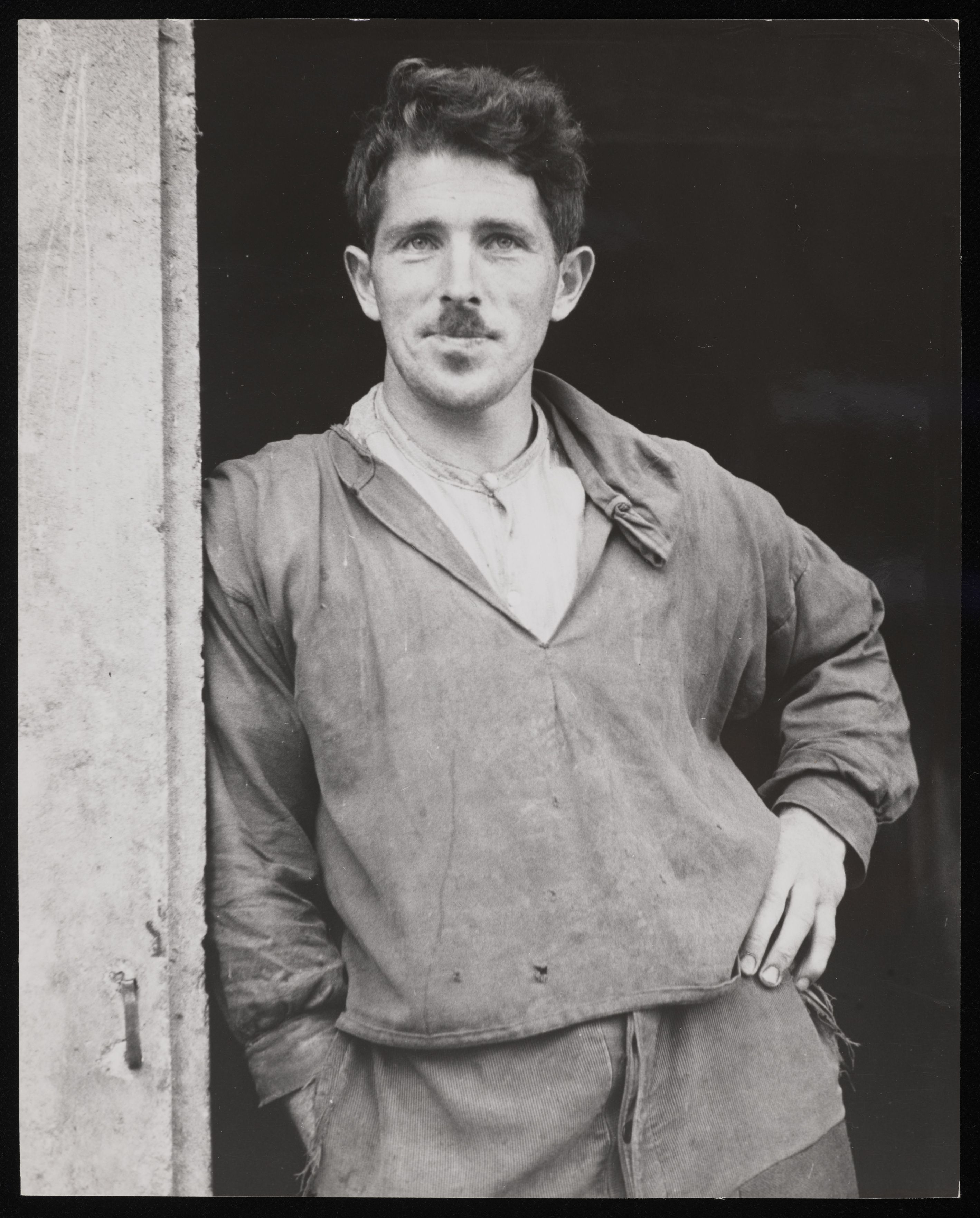 [Mann mit Schnurrbart in Hauseingang]