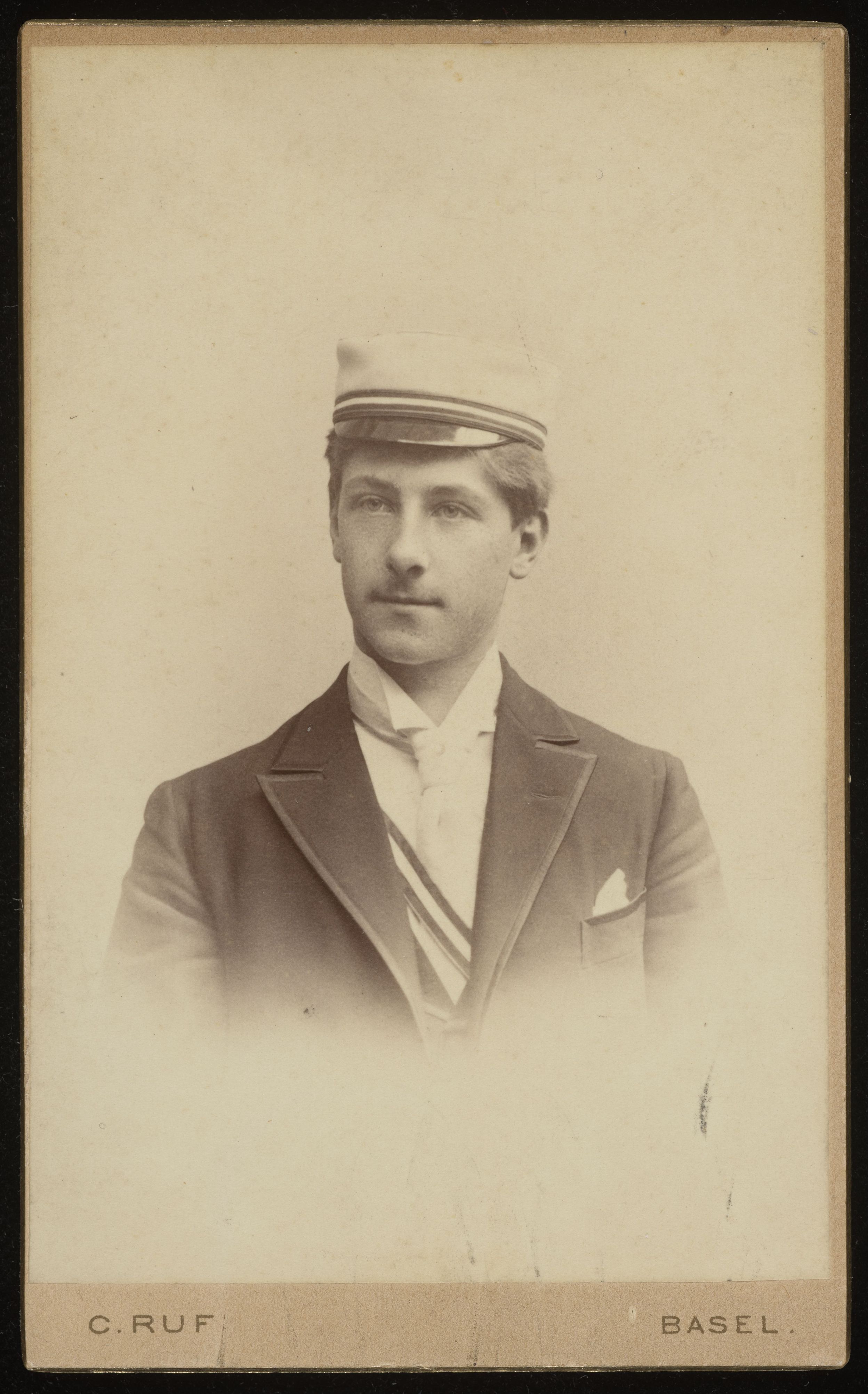 [Porträt eines Mannes mit Studentenmütze und Band]