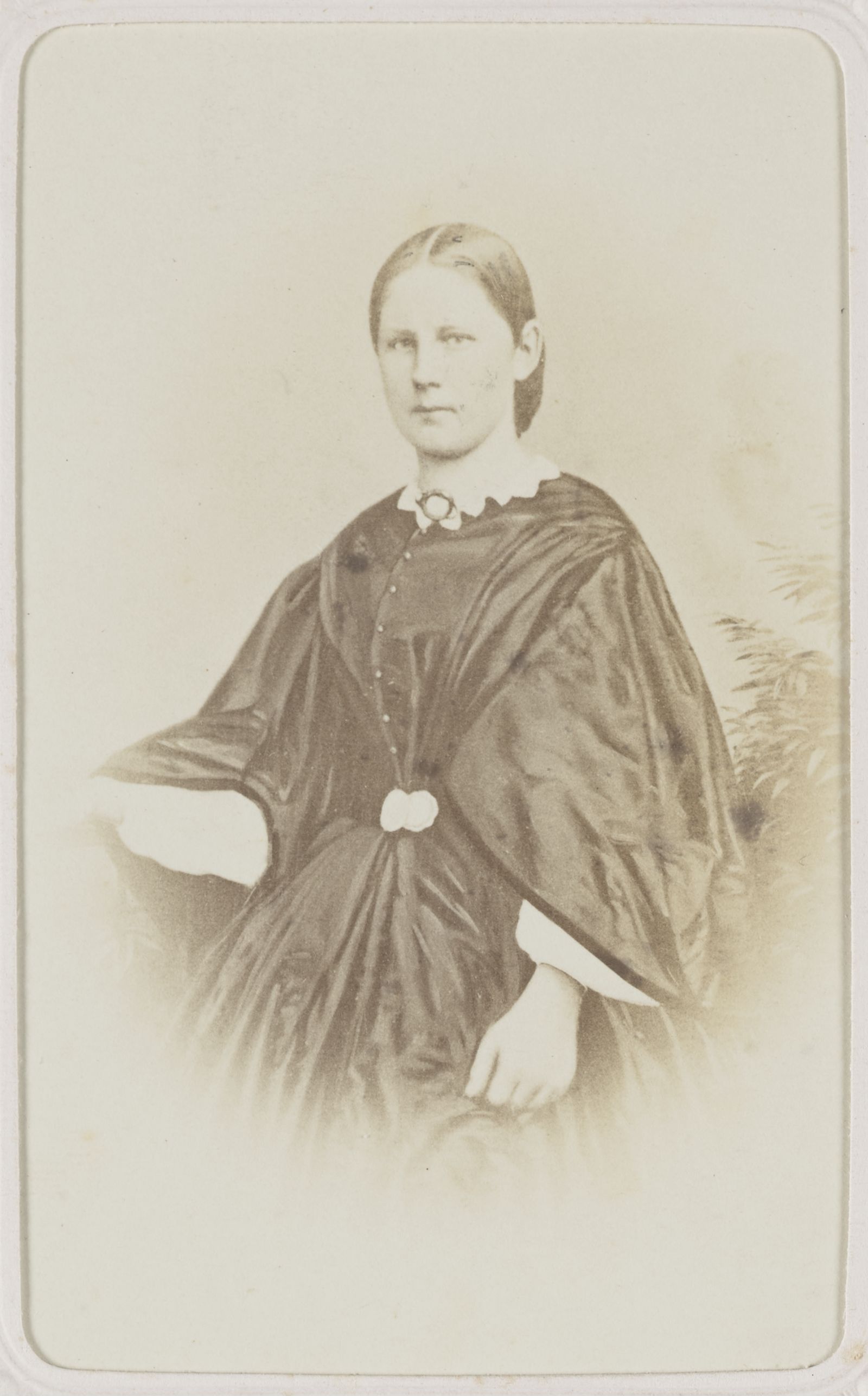[Porträt einer Frau in weitem Überkleid mit Medaillon an Spitzenkragen]