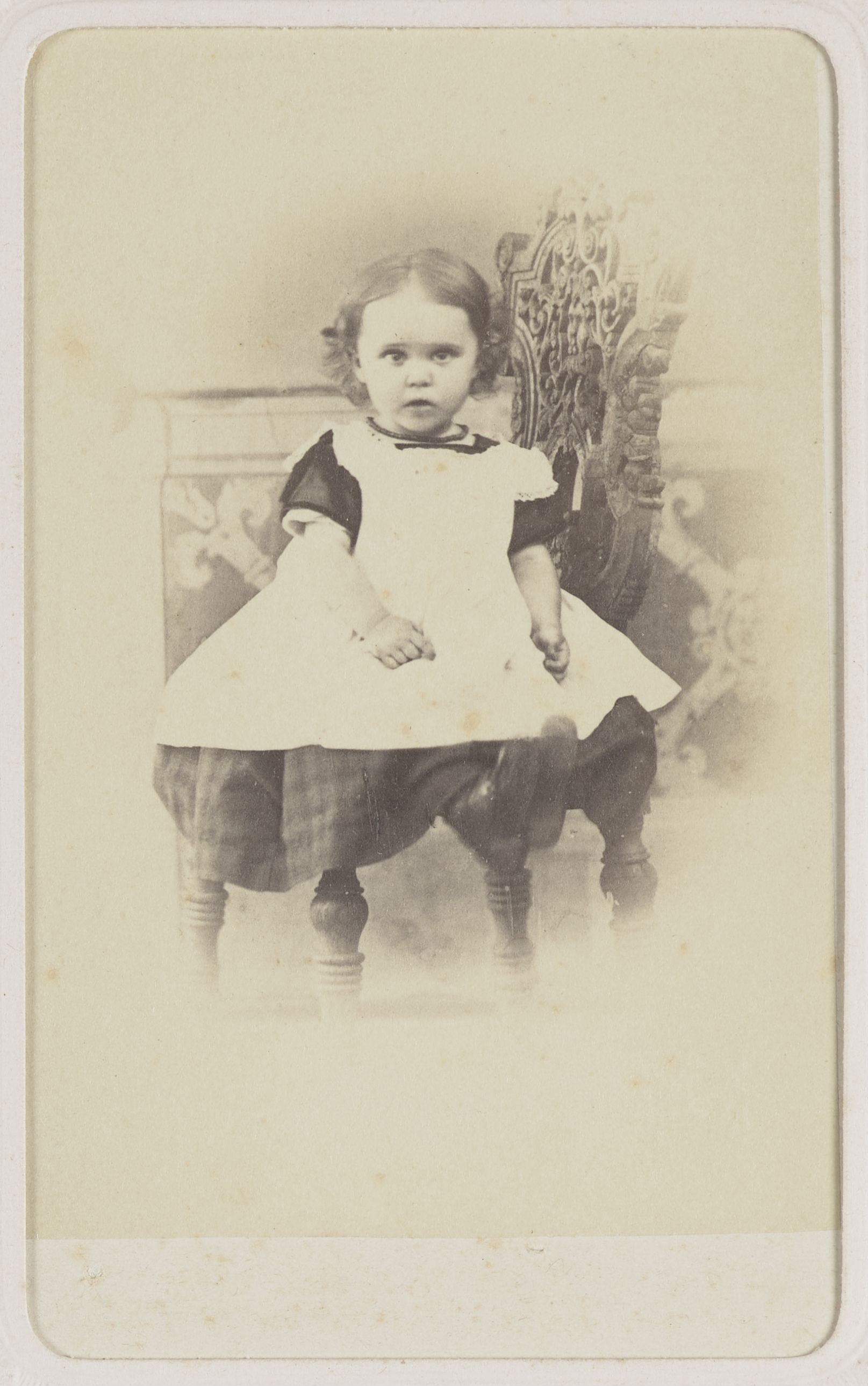 [Porträt eines Kleinkindes seitlich auf Stuhl sitzend]