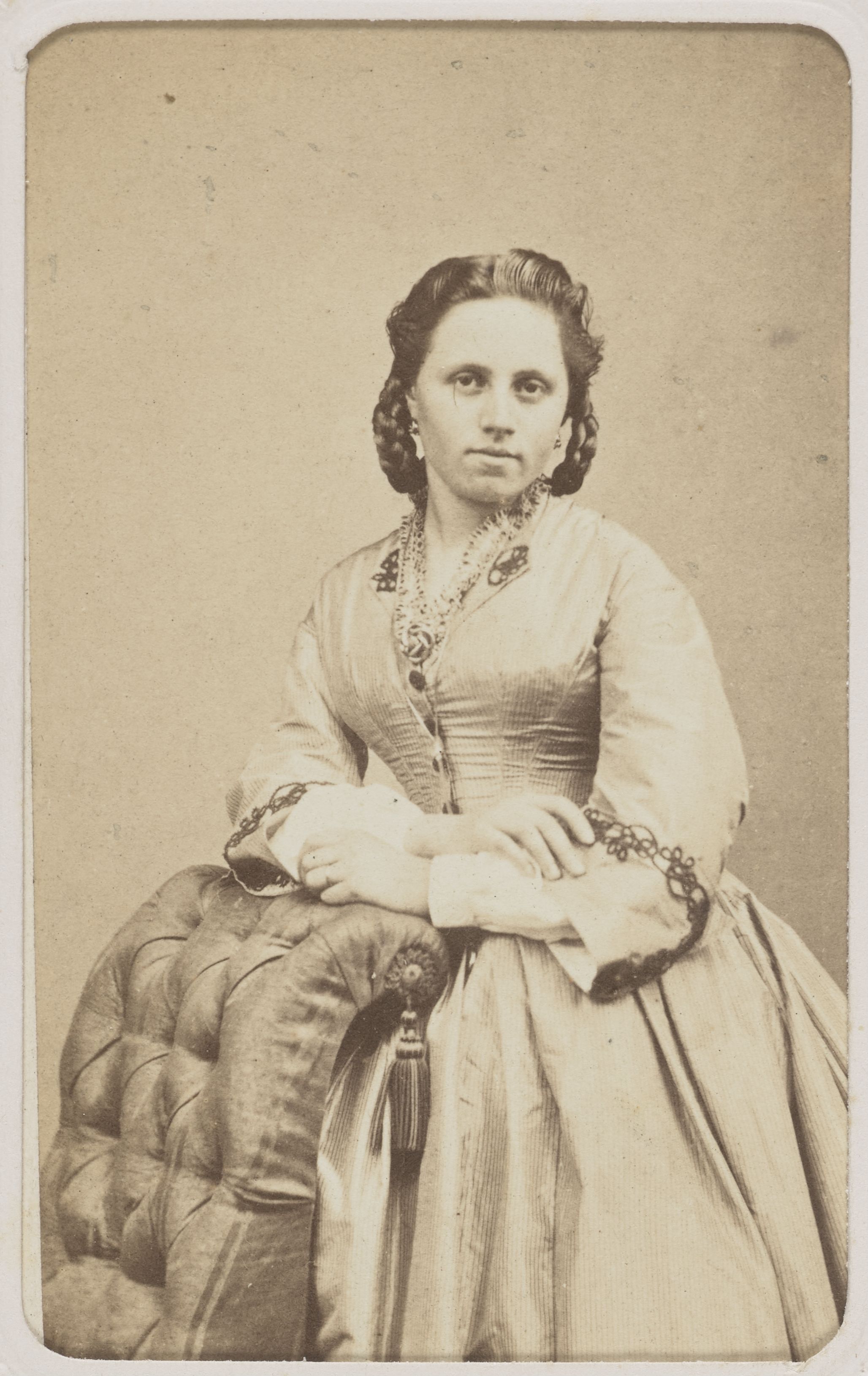 [Porträt Frau an Sessel aufgestützt]