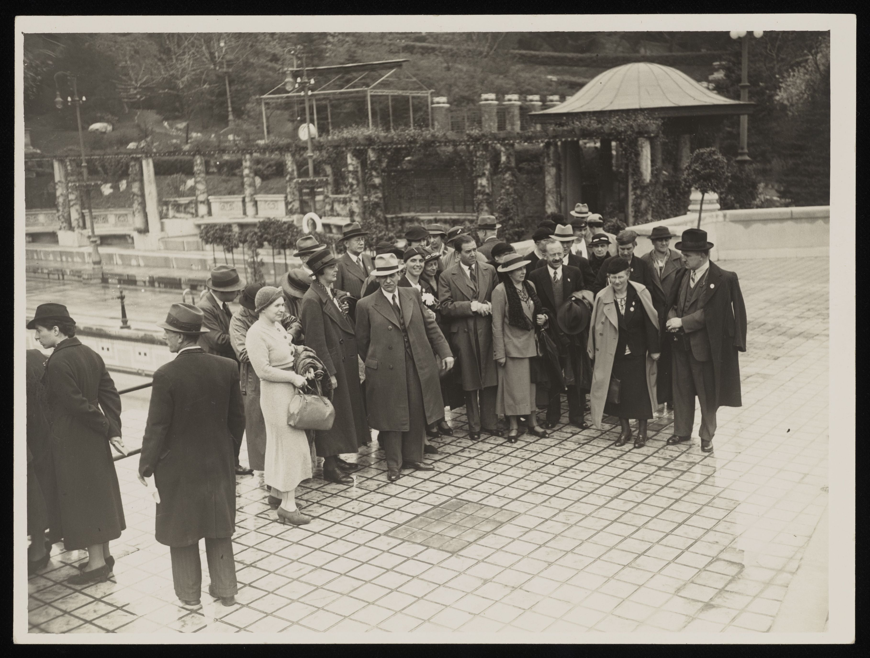 [Personen vor Gartenanlage]