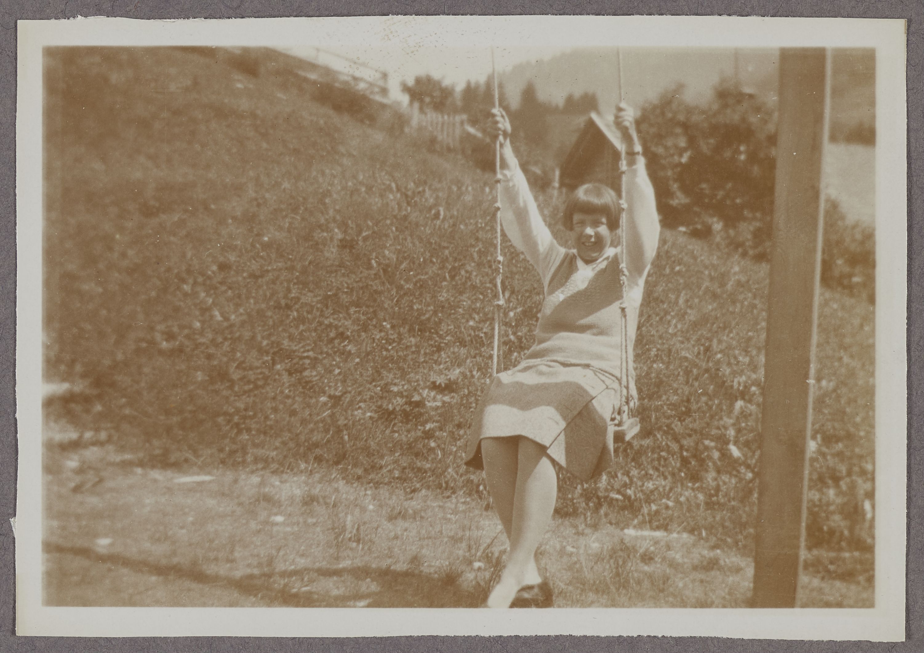 [Portrait einer jungen Frau auf einer Schaukel]