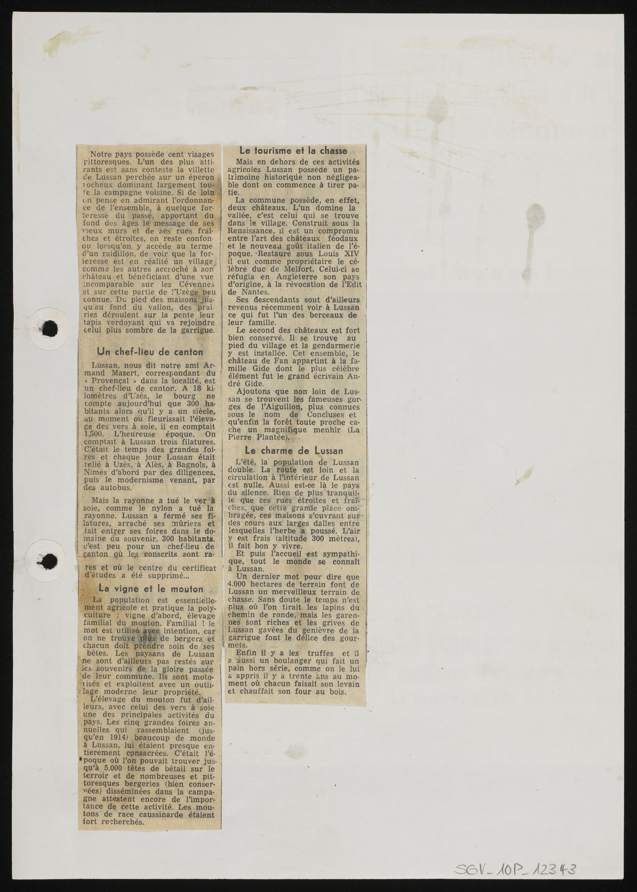 [Zeitungsauschnitt mit Notiz zu Lussan]