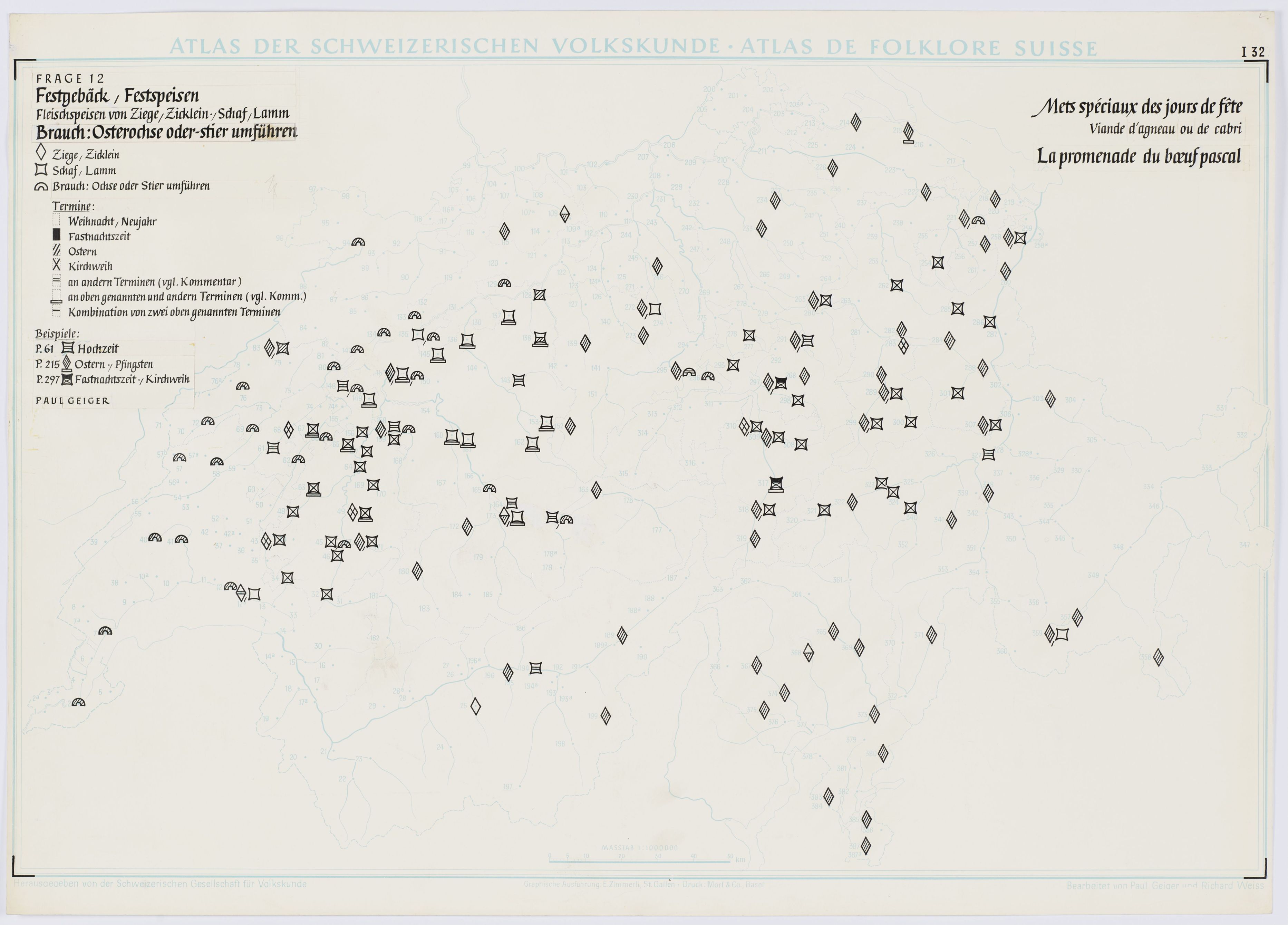 Festgebäck, Festspeisen. Fleischspeisen von Ziege, Zicklein, Schaf, Lamm. Brauch: Osterochse oder -stier umführen