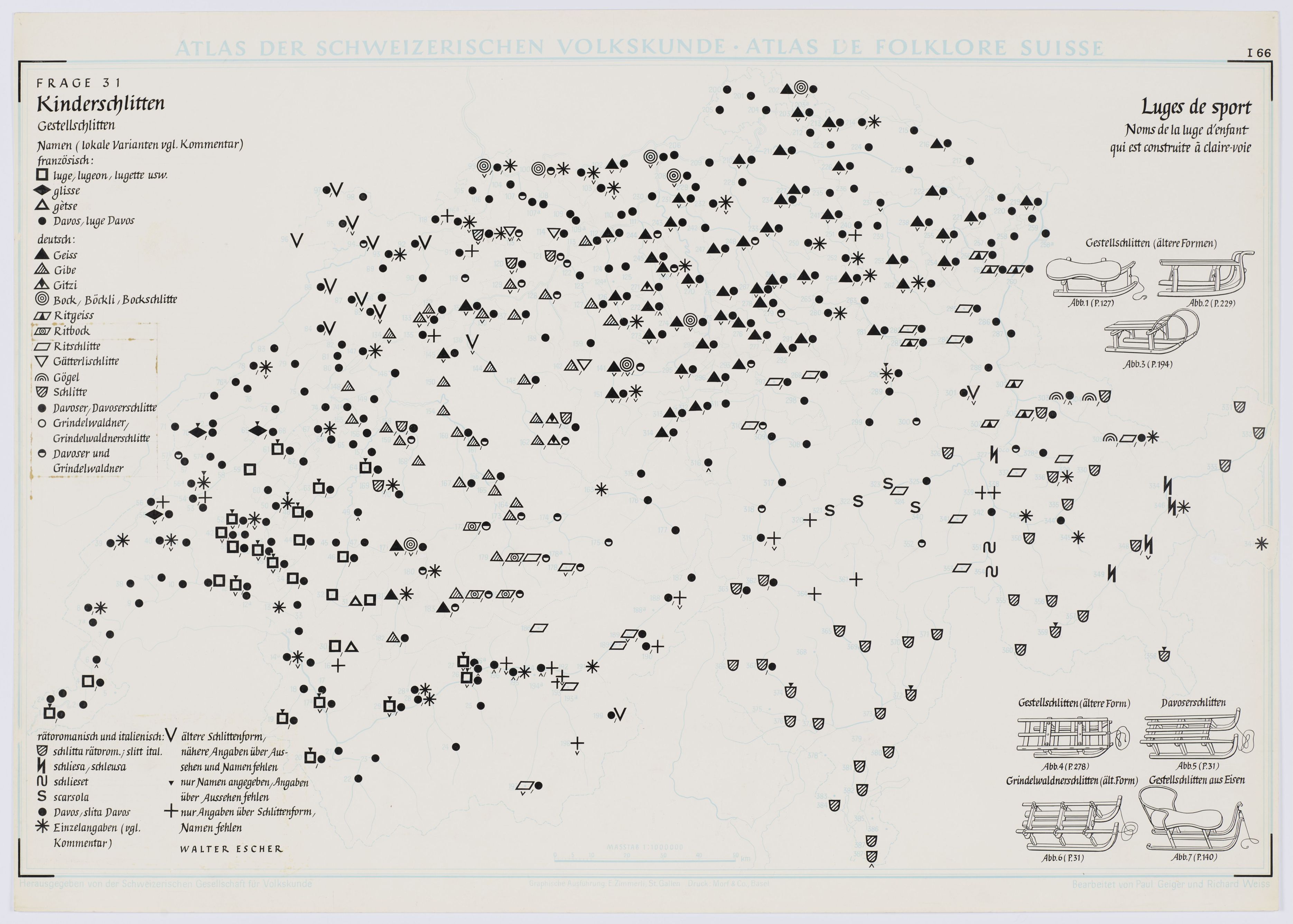 Kinderschlitten. Gestellschlitten. Namen (lokale Varianten vgl. Kommentar)