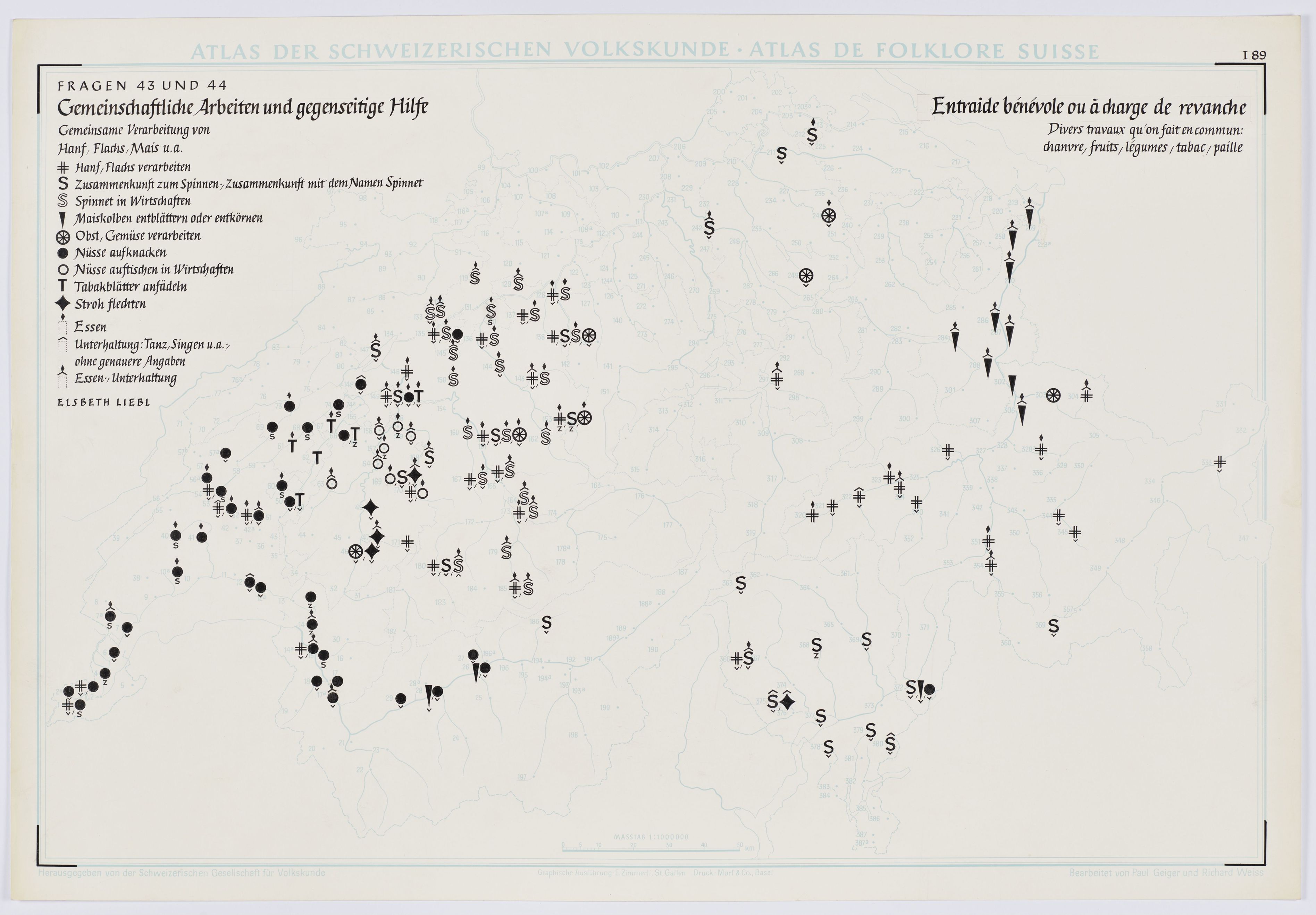 Gemeinschaftliche Arbeiten und gegenseitige Hilfe. Gemeinsame Verarbeitung von Hanf, Flachs, Mais u.a.