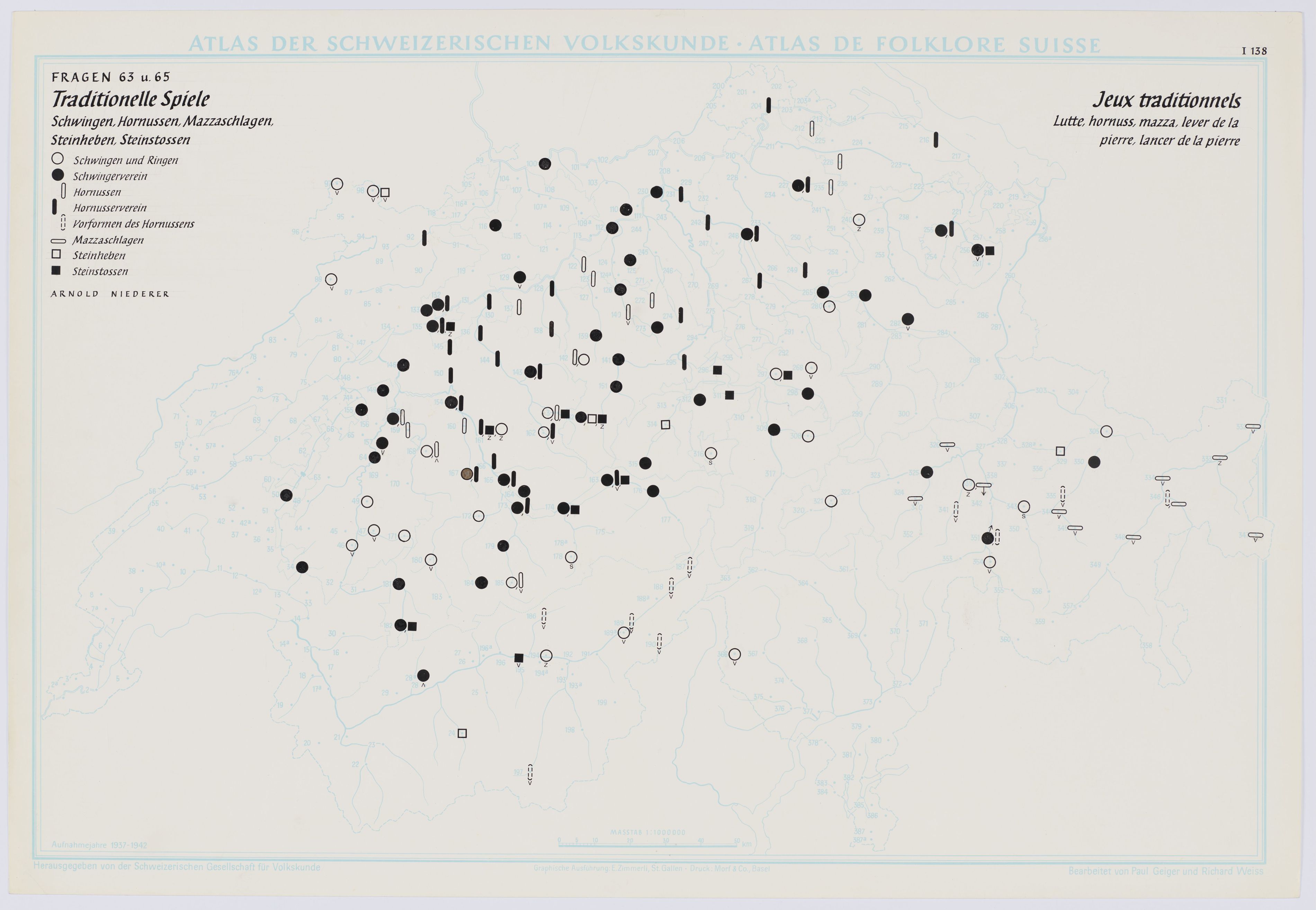 Traditionelle Spiele. Schwingen, Hornussen, Mazzaschlagen, Steinheben, Steinstossen