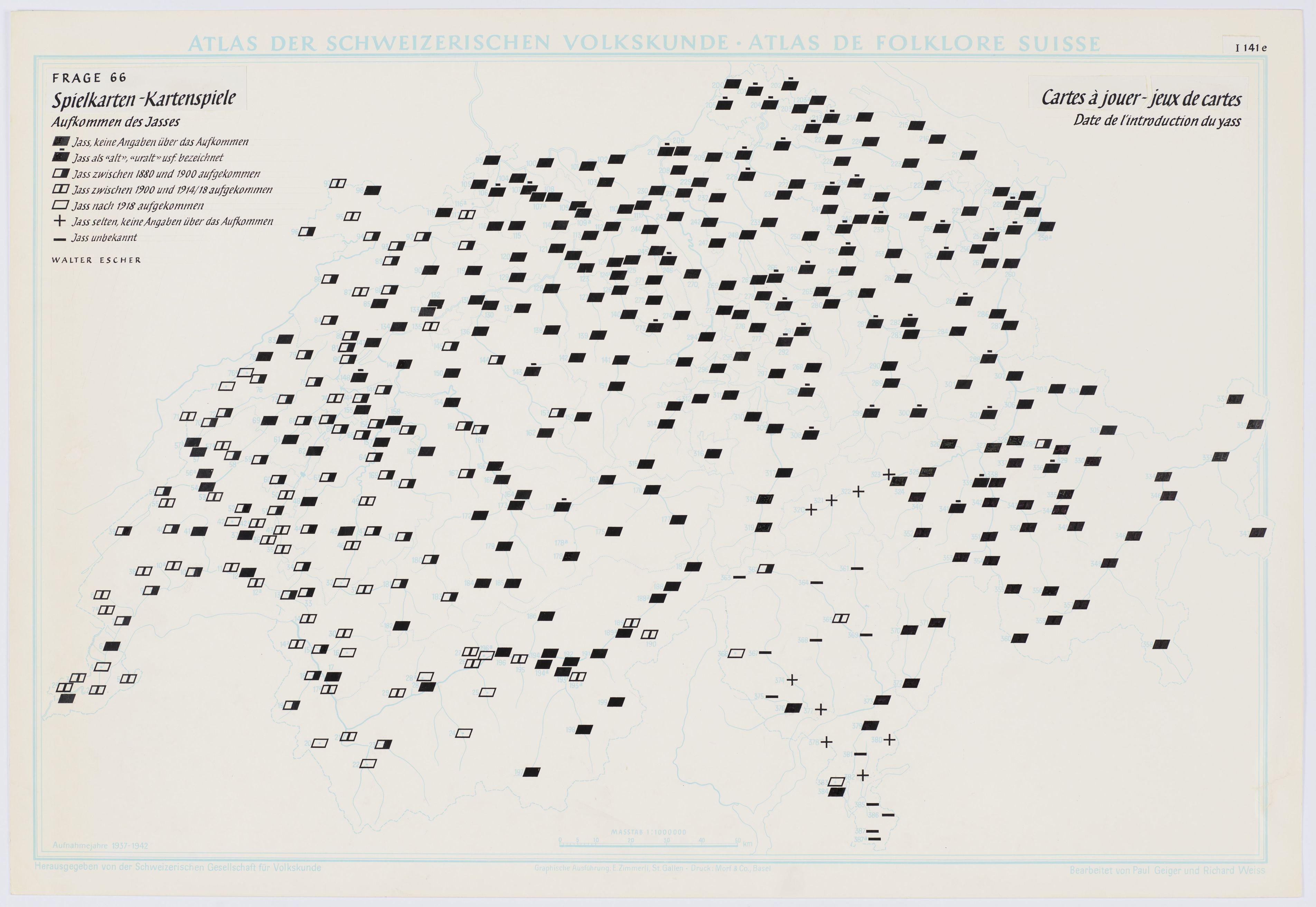 Spielkarten – Kartenspiele. Aufkommen des Jasses.