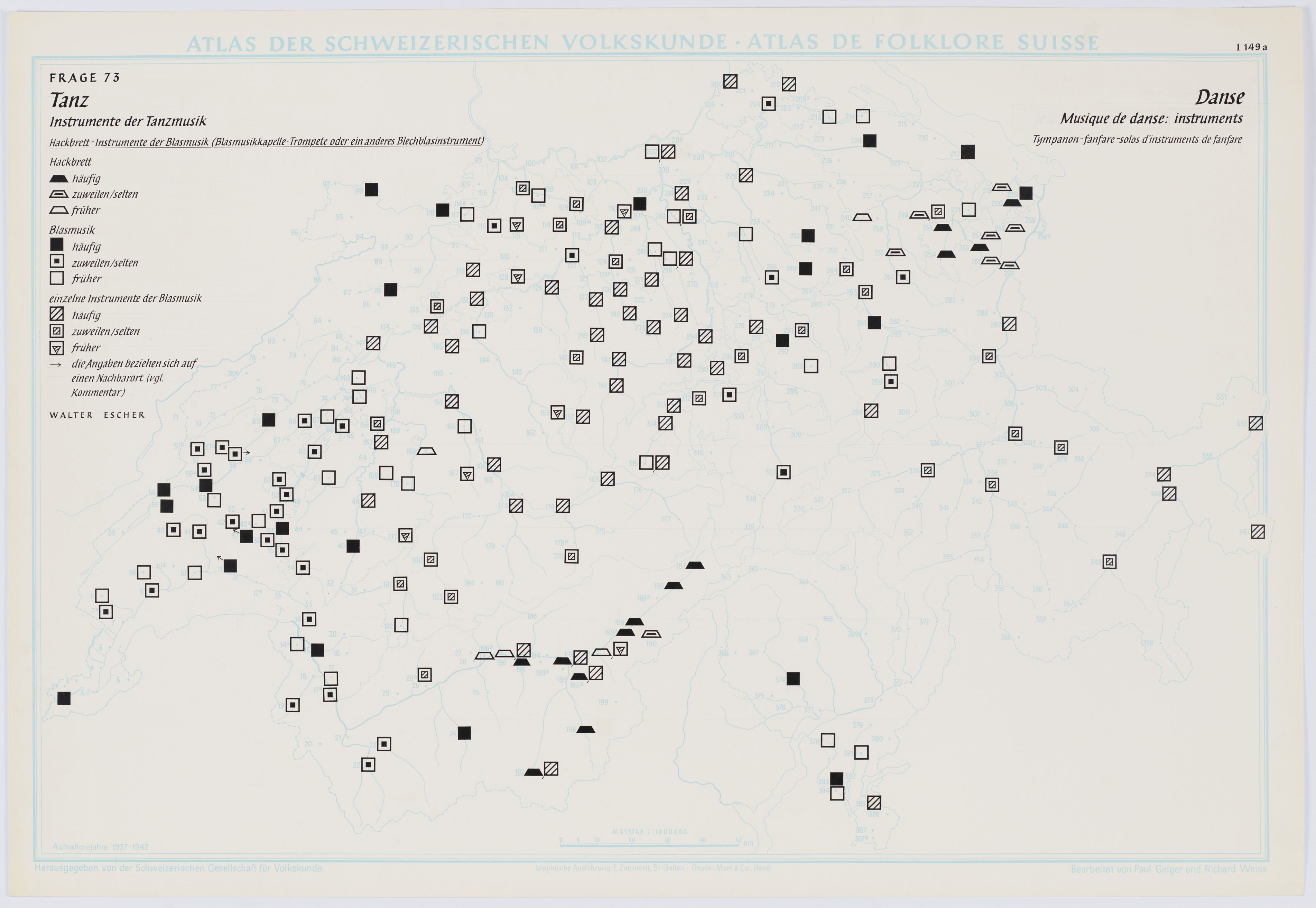 Tanz. Instrumente der Tanzmusik. Hackbrett – Instrumente der Blasmusik (Blasmusikkapelle – Trompete oder ein anderes Blechblasinstrument