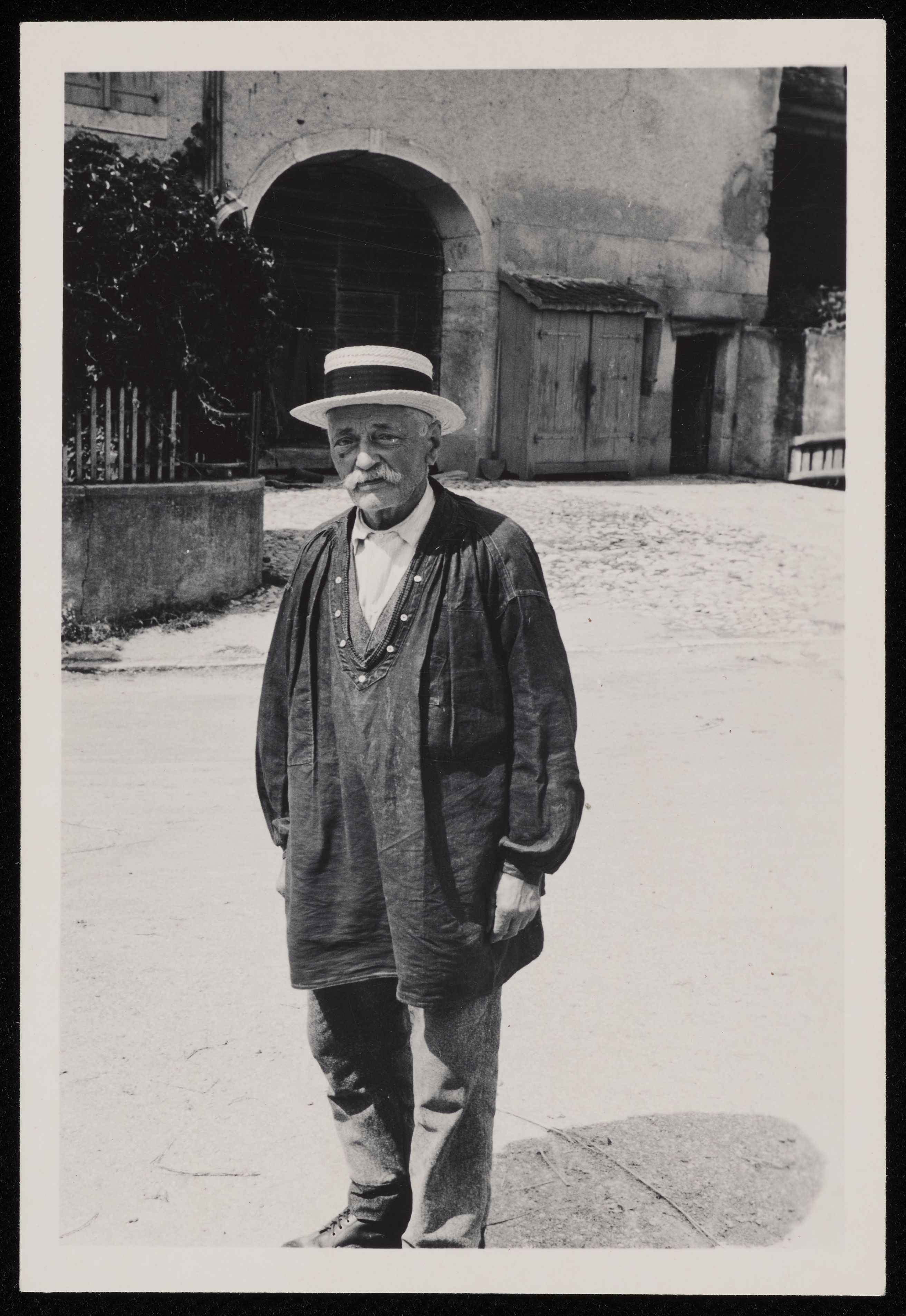 [Penthalaz VD Mann trägt eine Bluse, wie sie die Waadtländer Bauern damals aktuell getragen haben]