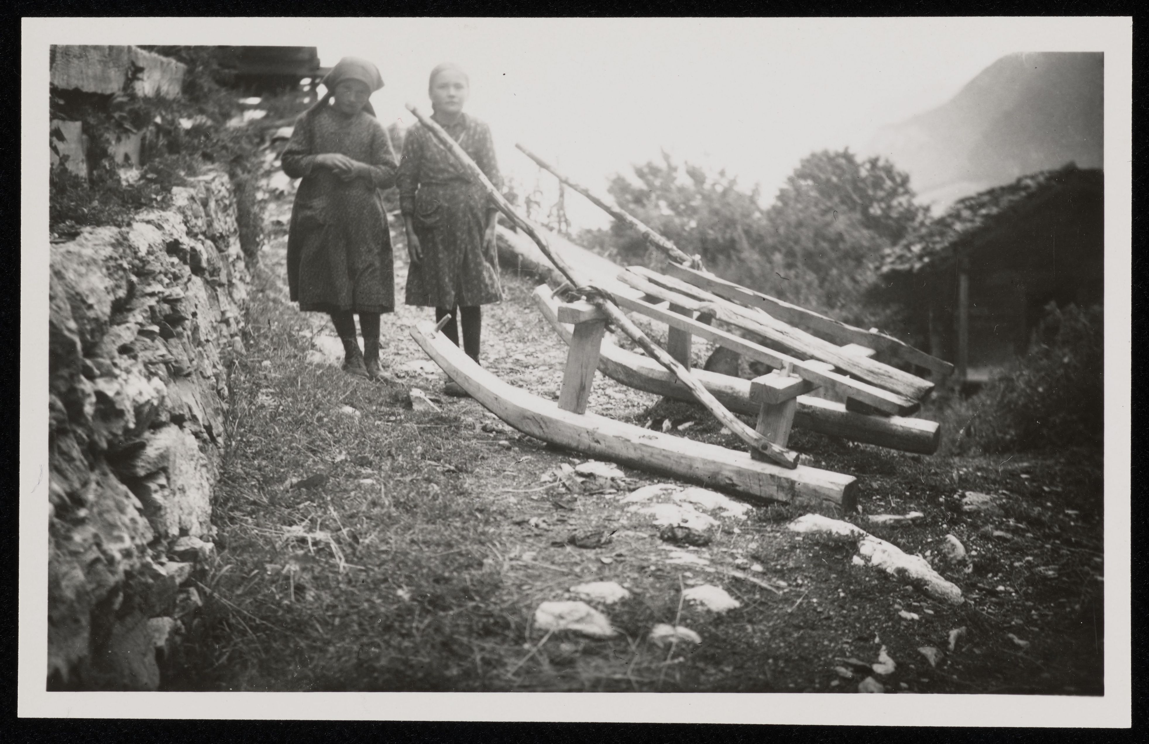 [Schlitten mit zwei Mädchen]
