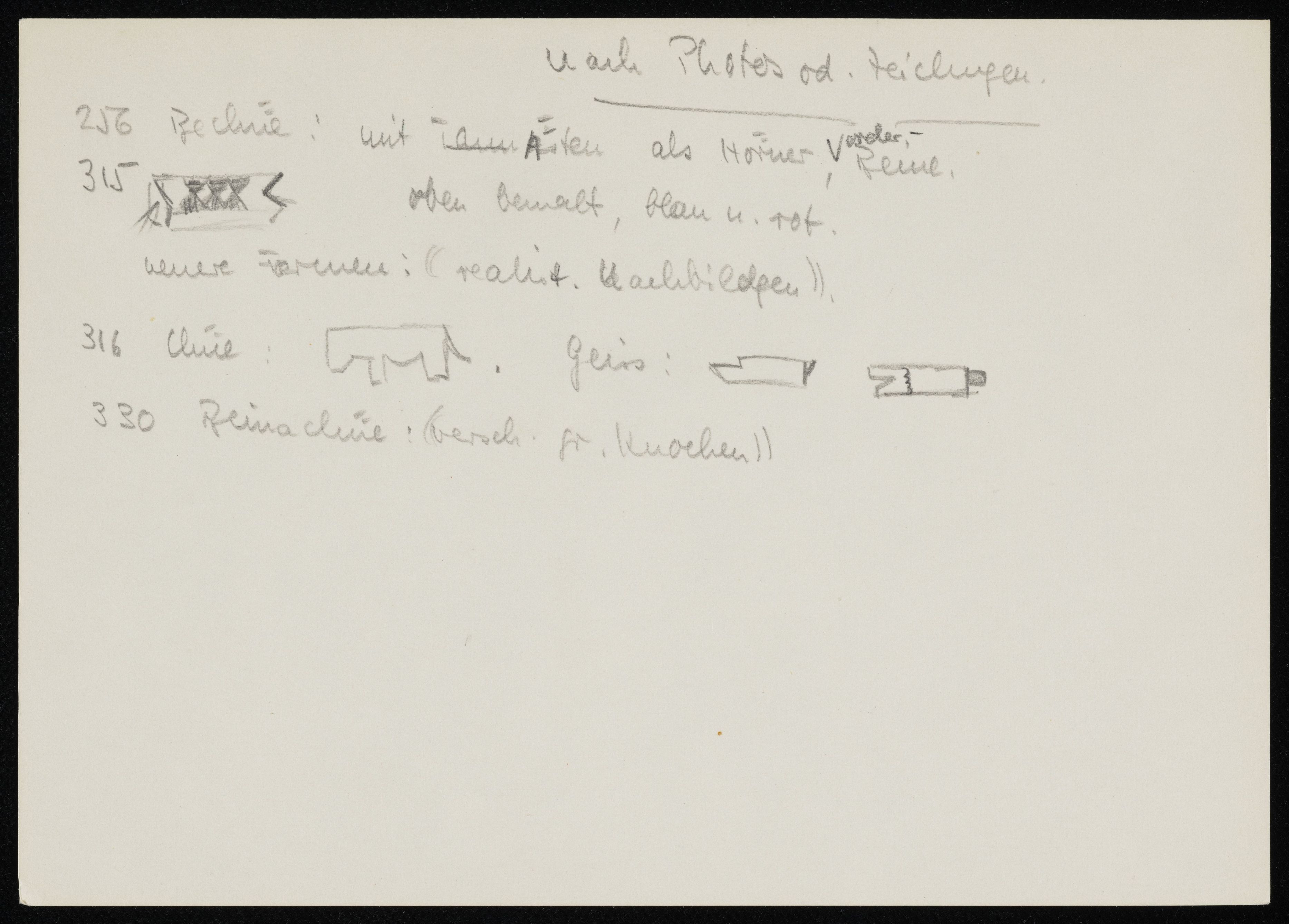 [Skizze von Spielzeugtieren, Holz, beschriftet]
