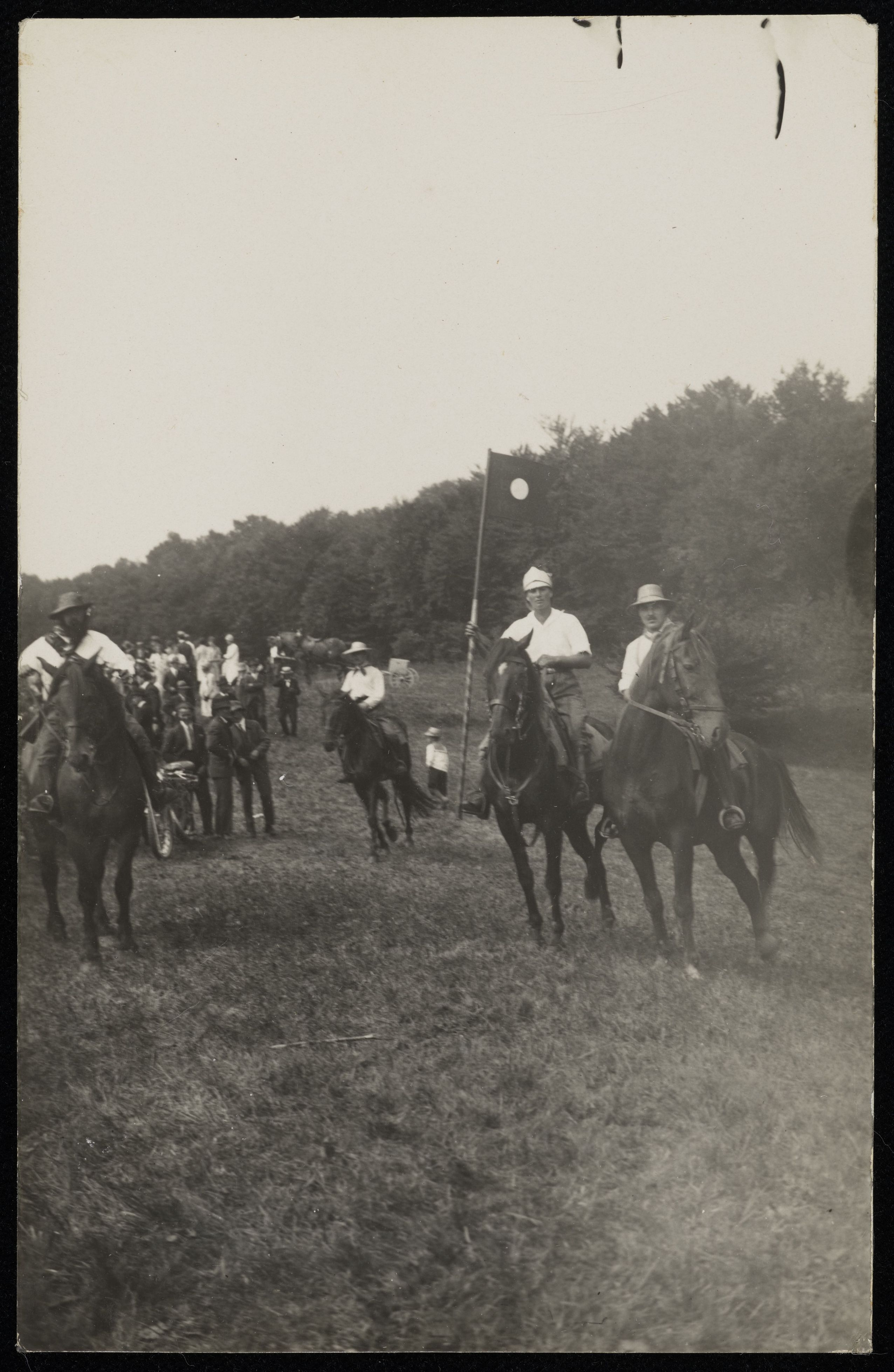 [Jugendliche spielen Freischarenmanöver auf Pferden nach]