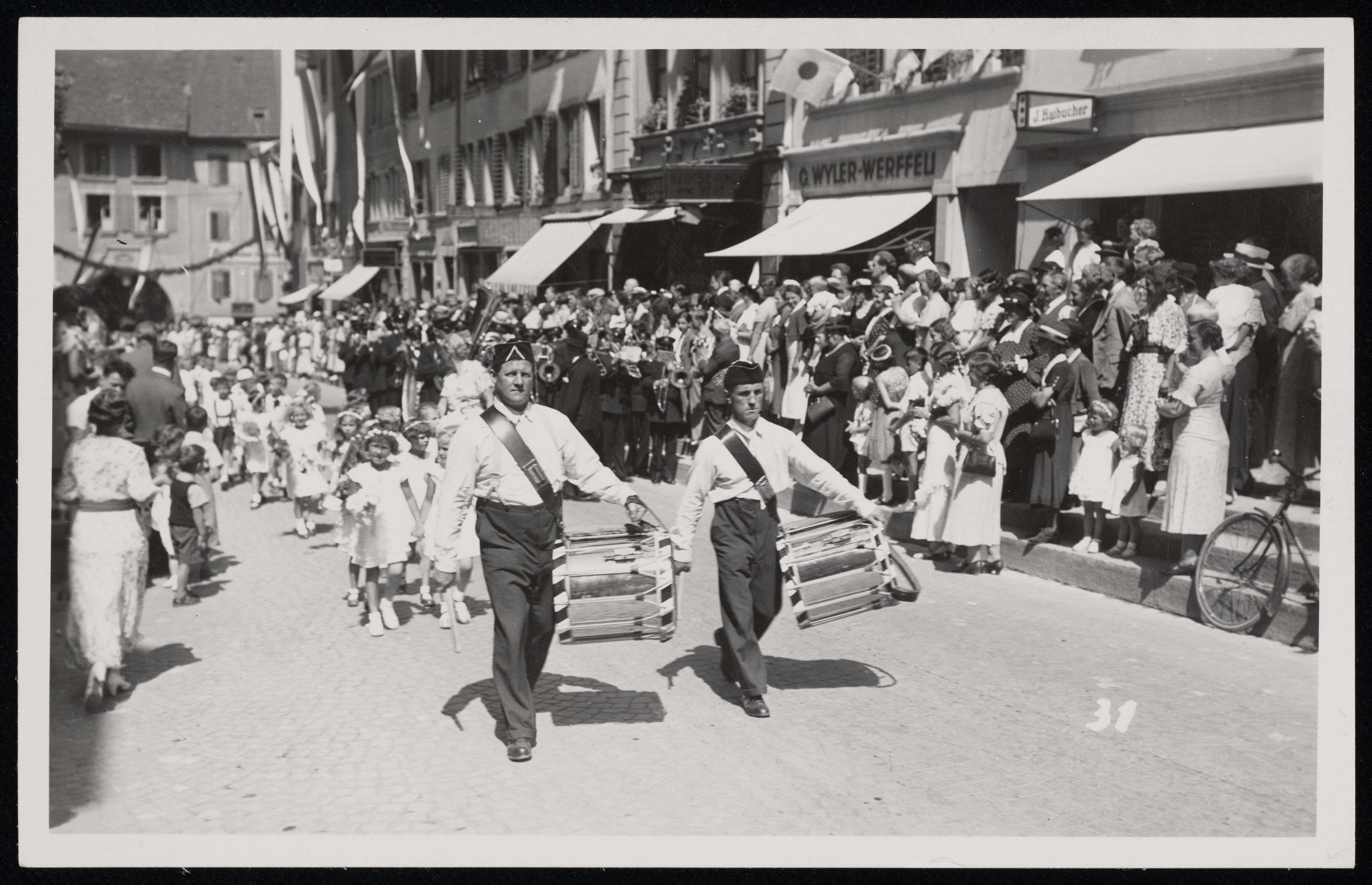 [Umzug im Rahmen des Jugendfests mit zwei Tambouren]