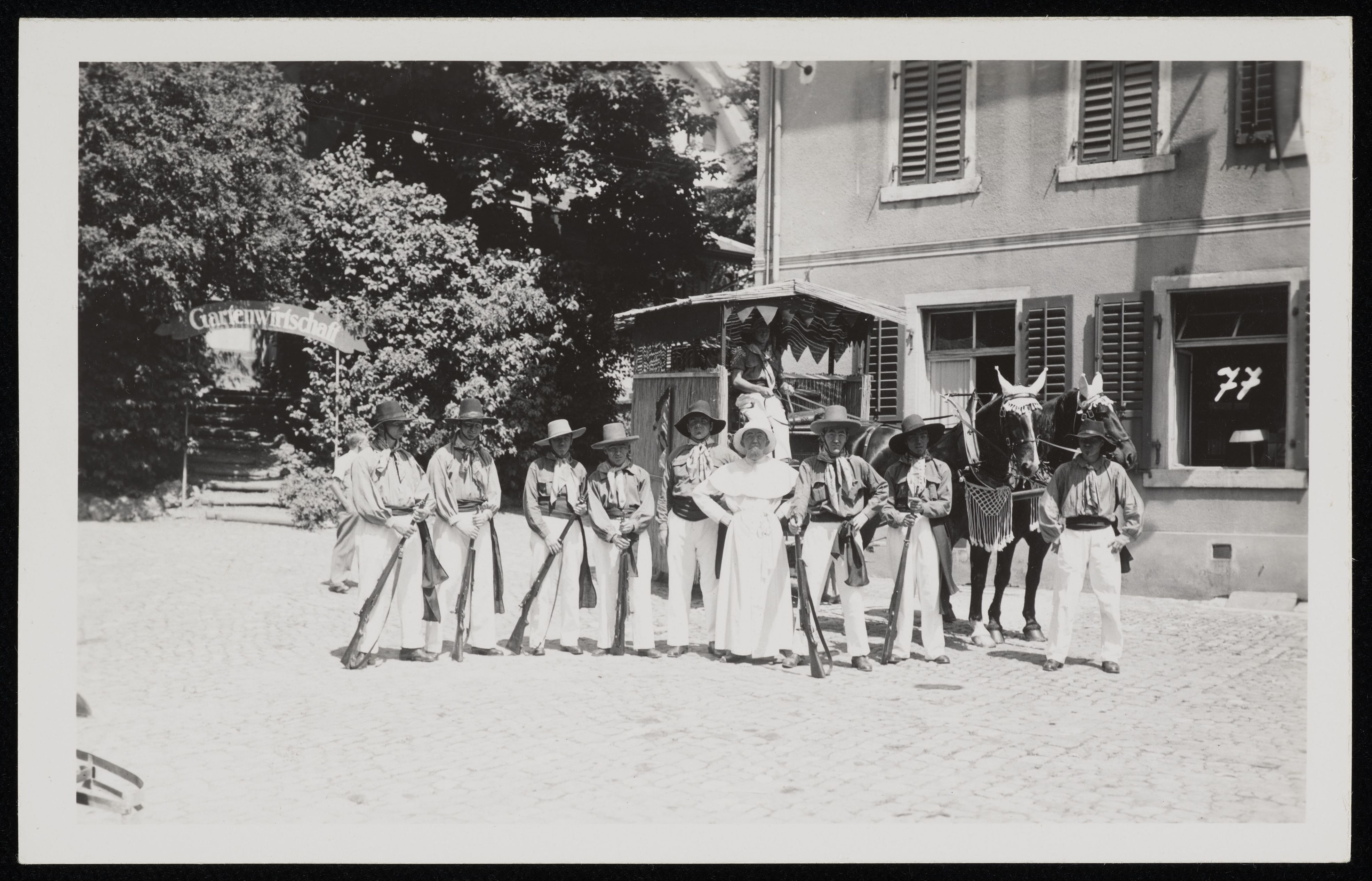 [Jugendliche spielen Freischarenmanöver nach]