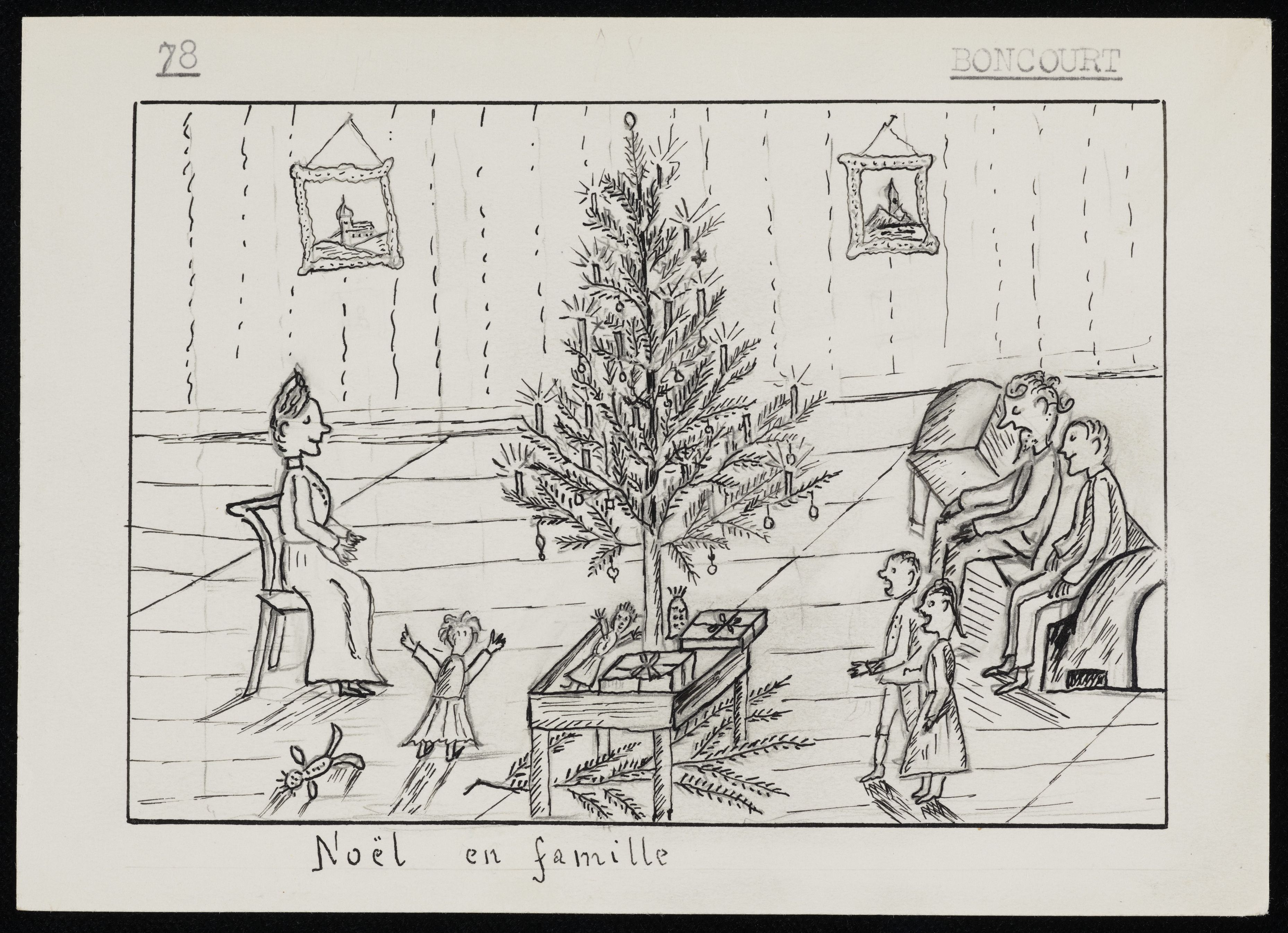 [Zeichnung Weihnachtsbaum mit Familie]