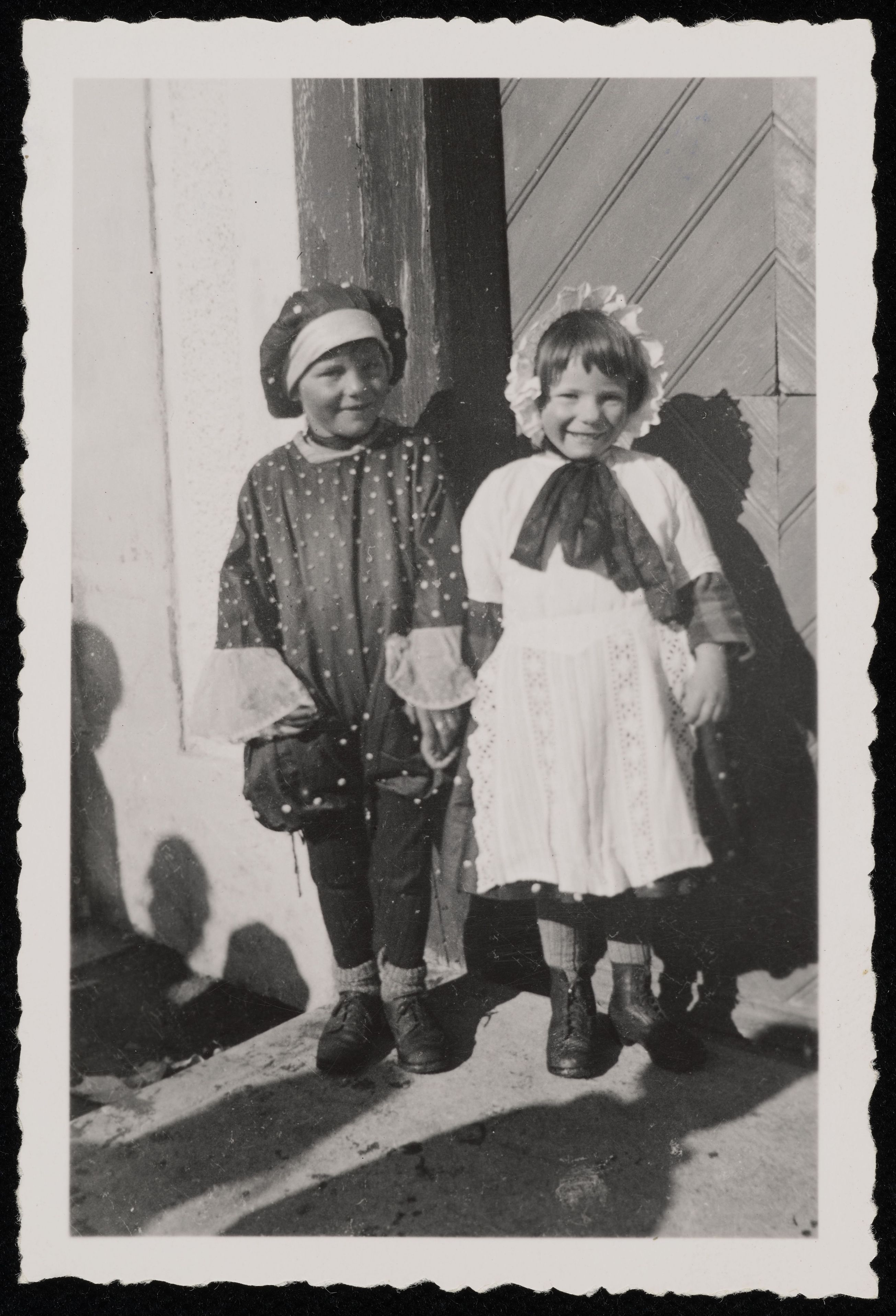 [Zwei verkleidete Kinder mit Hauben in Entlebuch]