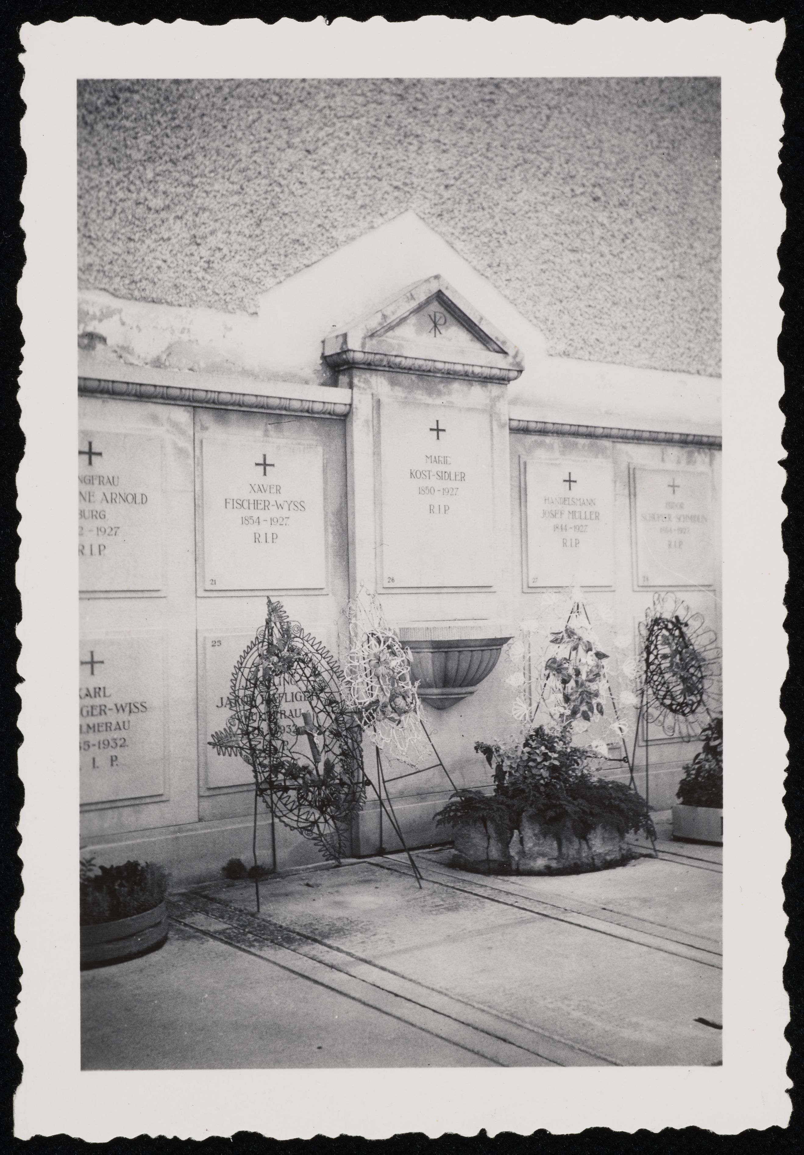 [Urnenwand auf einem Friedhof]