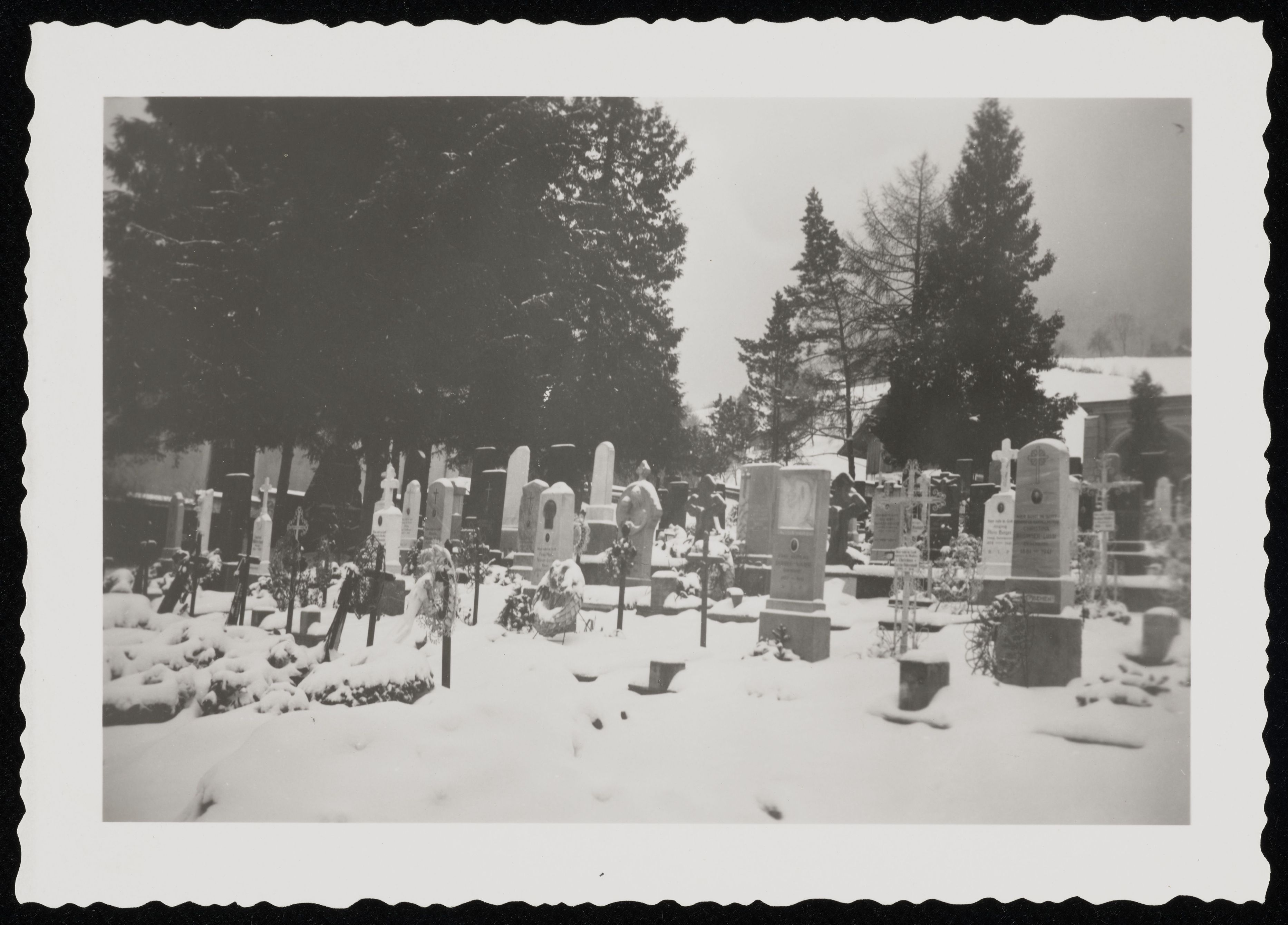 [Friedhof mit Gräbern im Schnee]