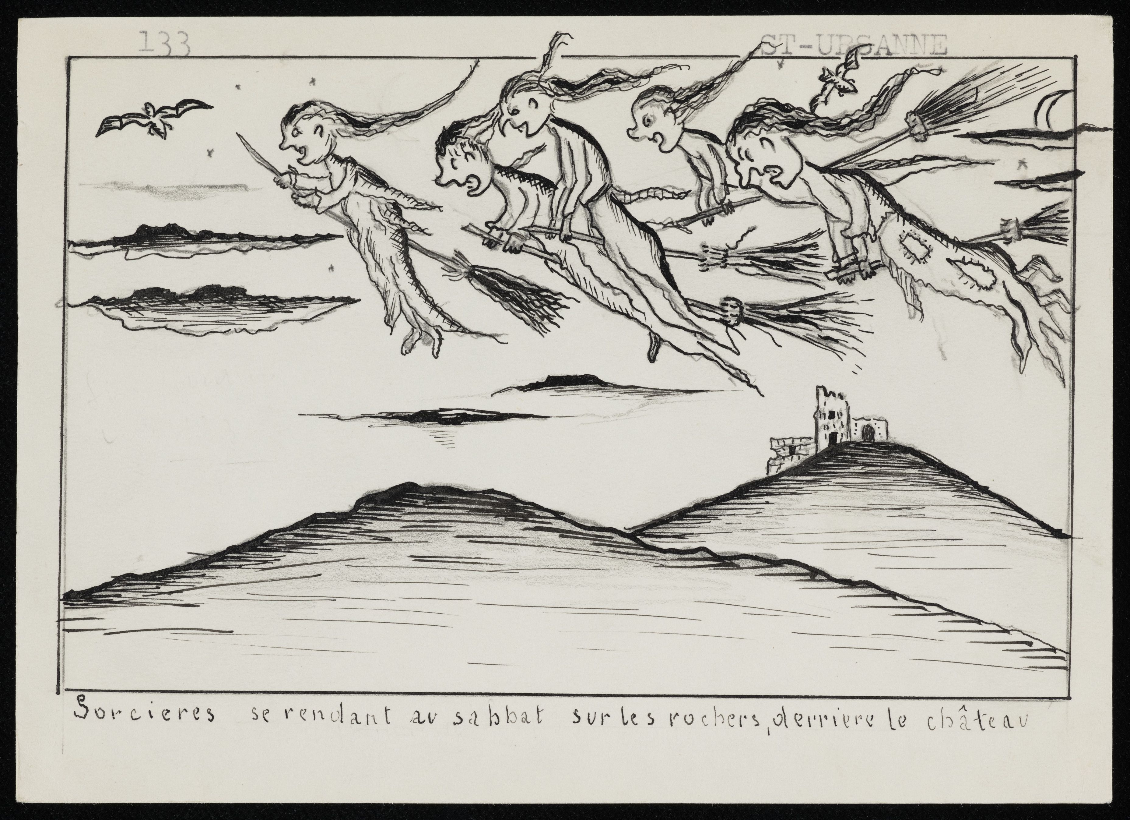 [Zeichnung von Hexen auf dem Besen]