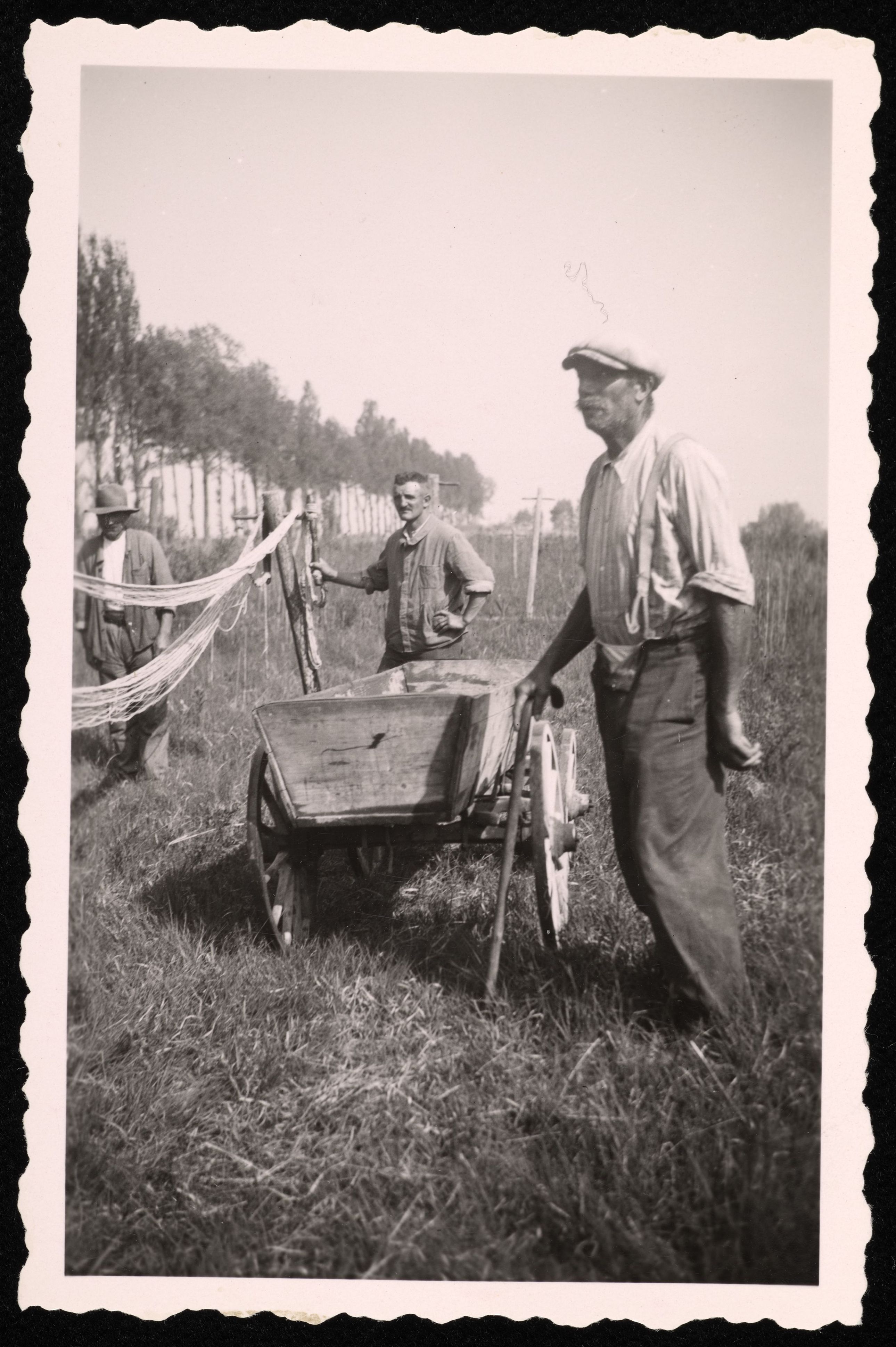 [Dei Personen mit Wagen und Fischernetzen]