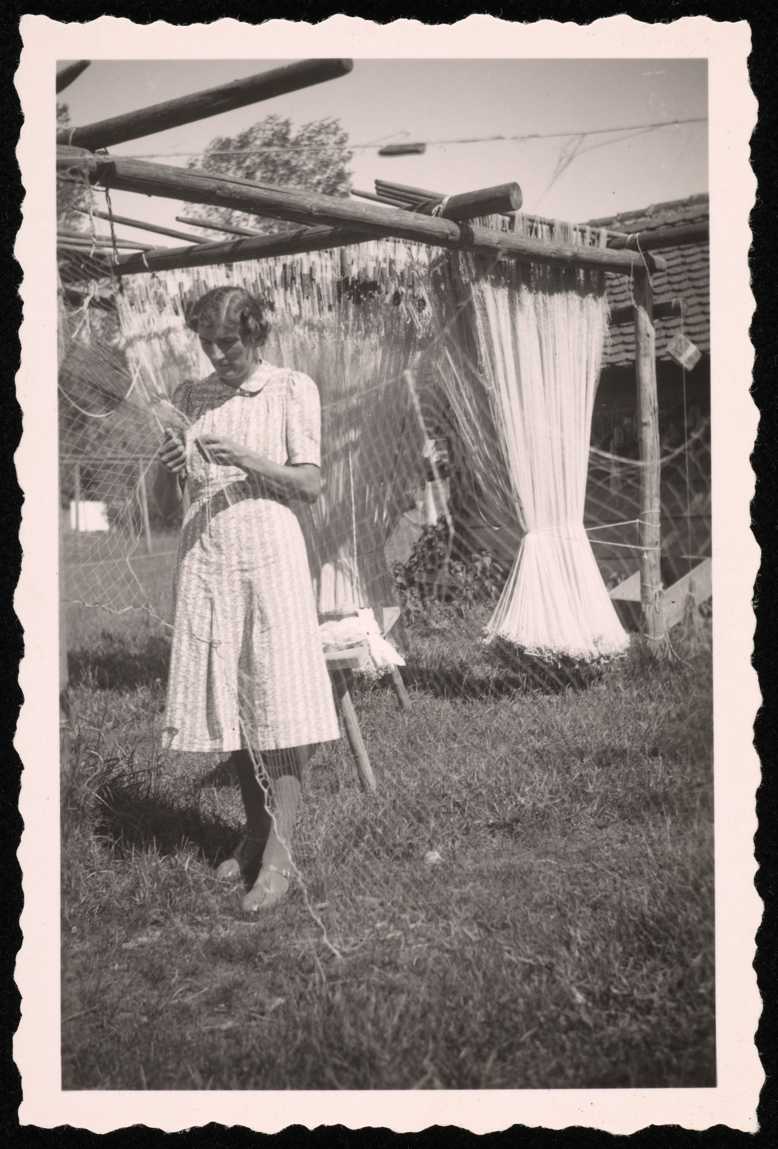 [Person beim Ausbessern von Fischernetzen]