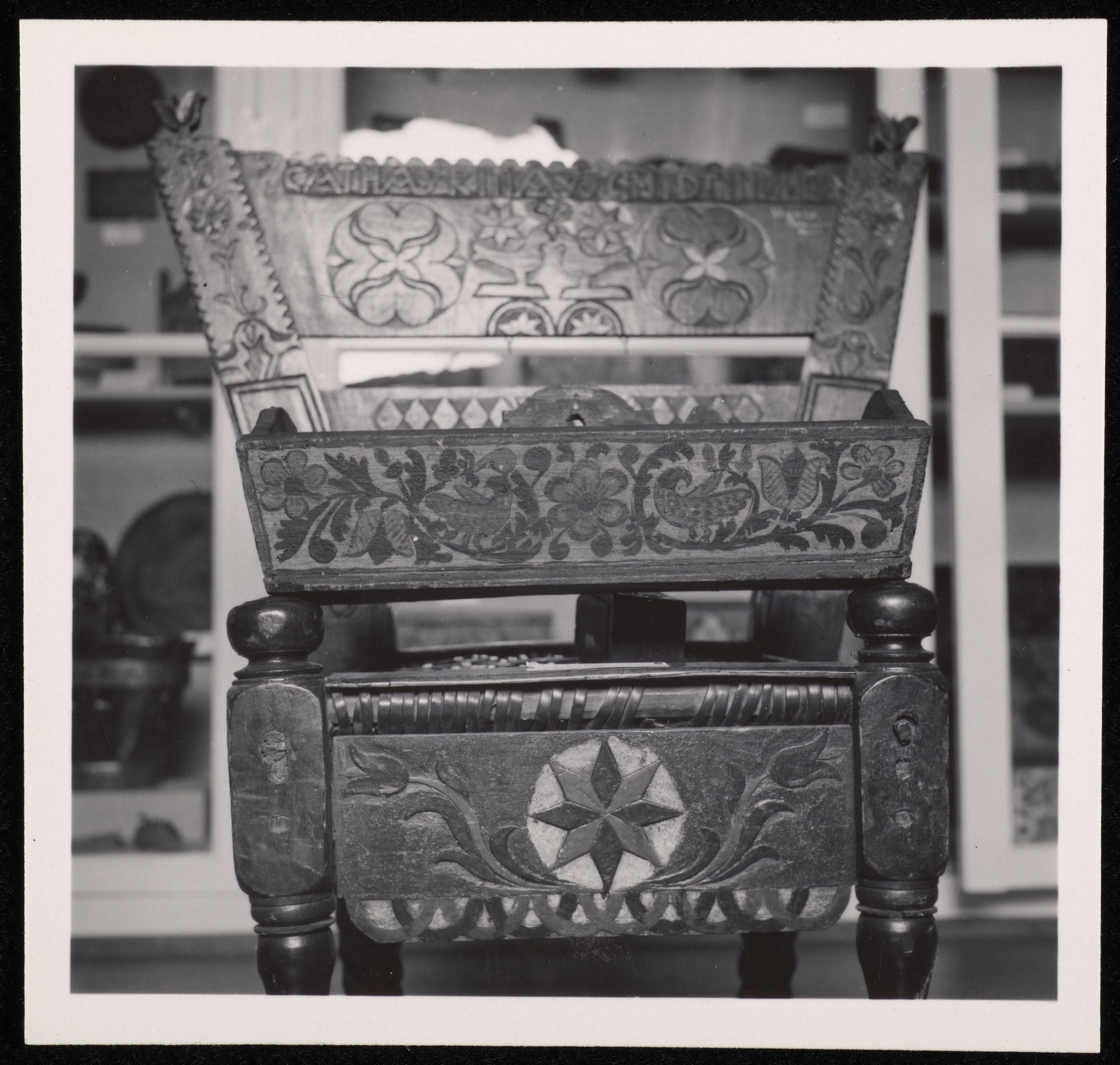 [Stuhl mit Aufsatz und Gravur]