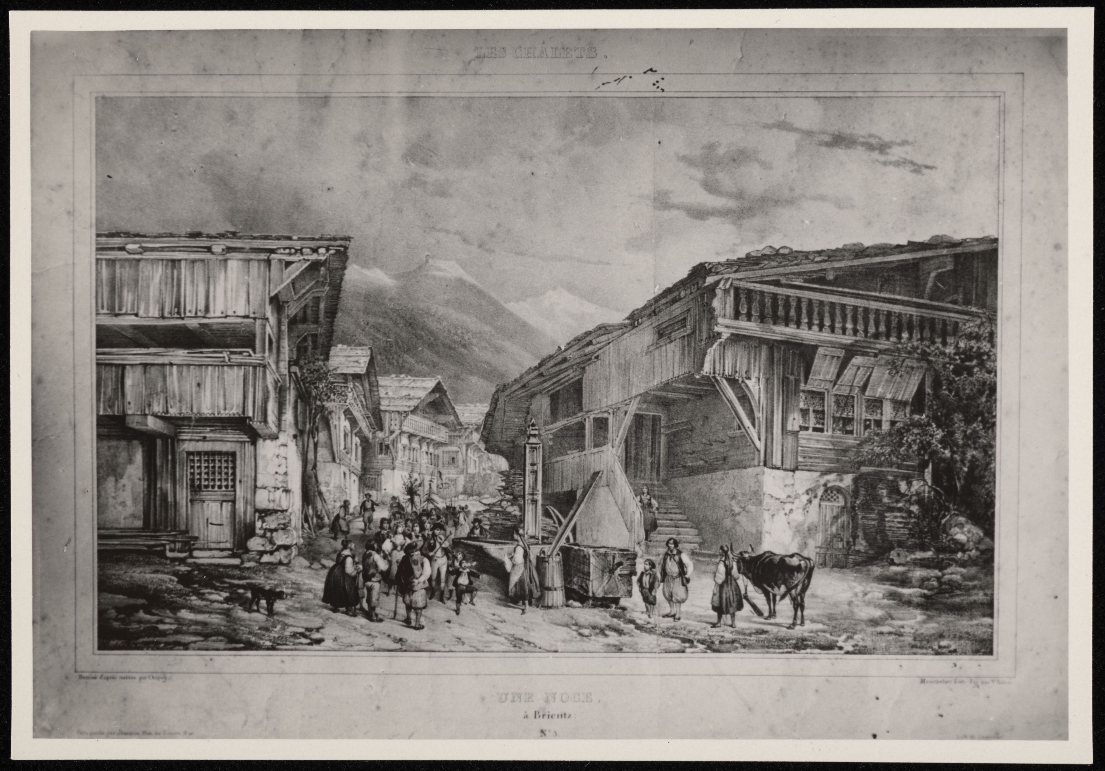 [Gemälde mit dem Titel Les Chalets. Une Nous à Brientz]