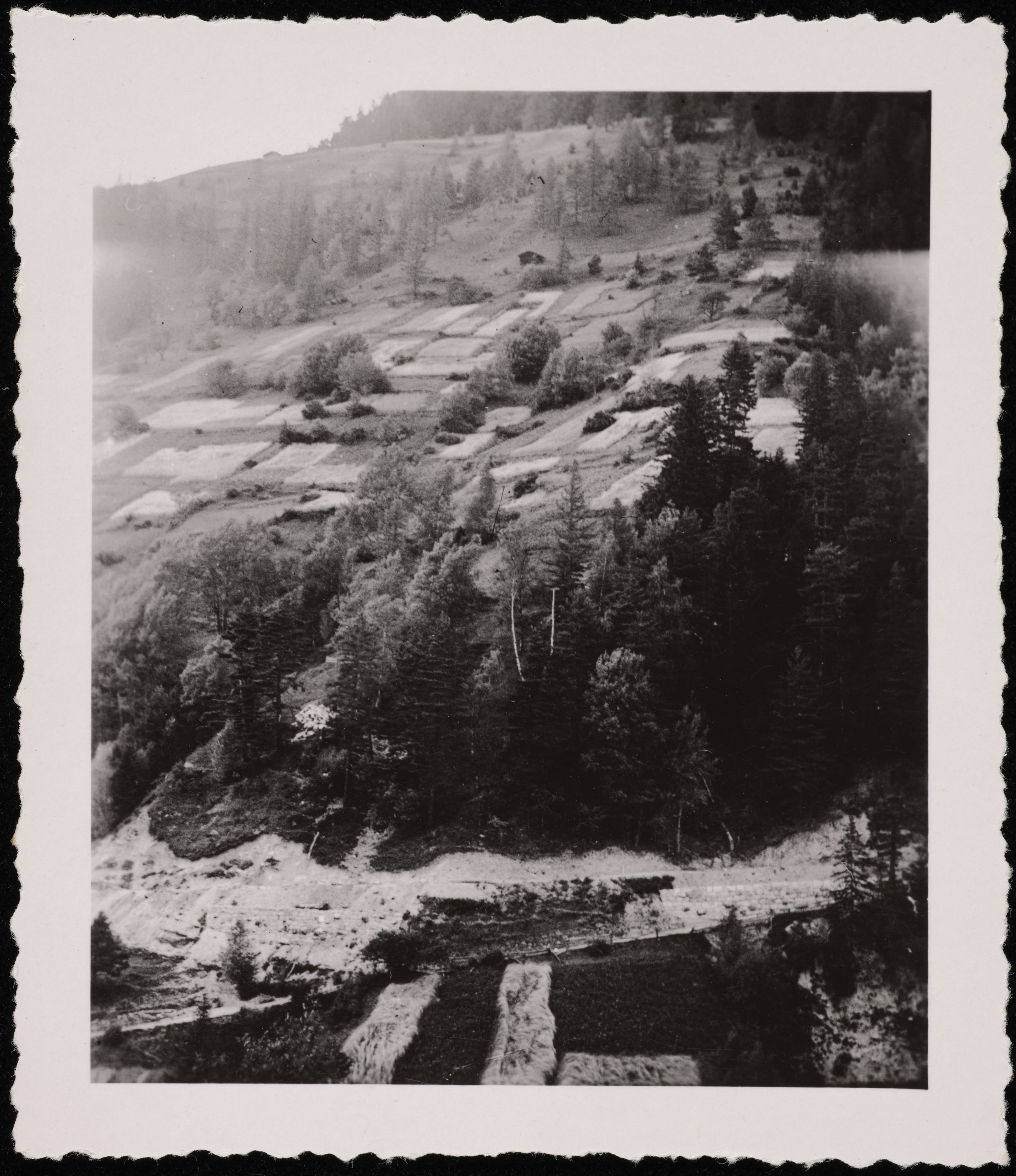 [Kleine Landwirtschaftsparzellen an Berghang im Wallis]