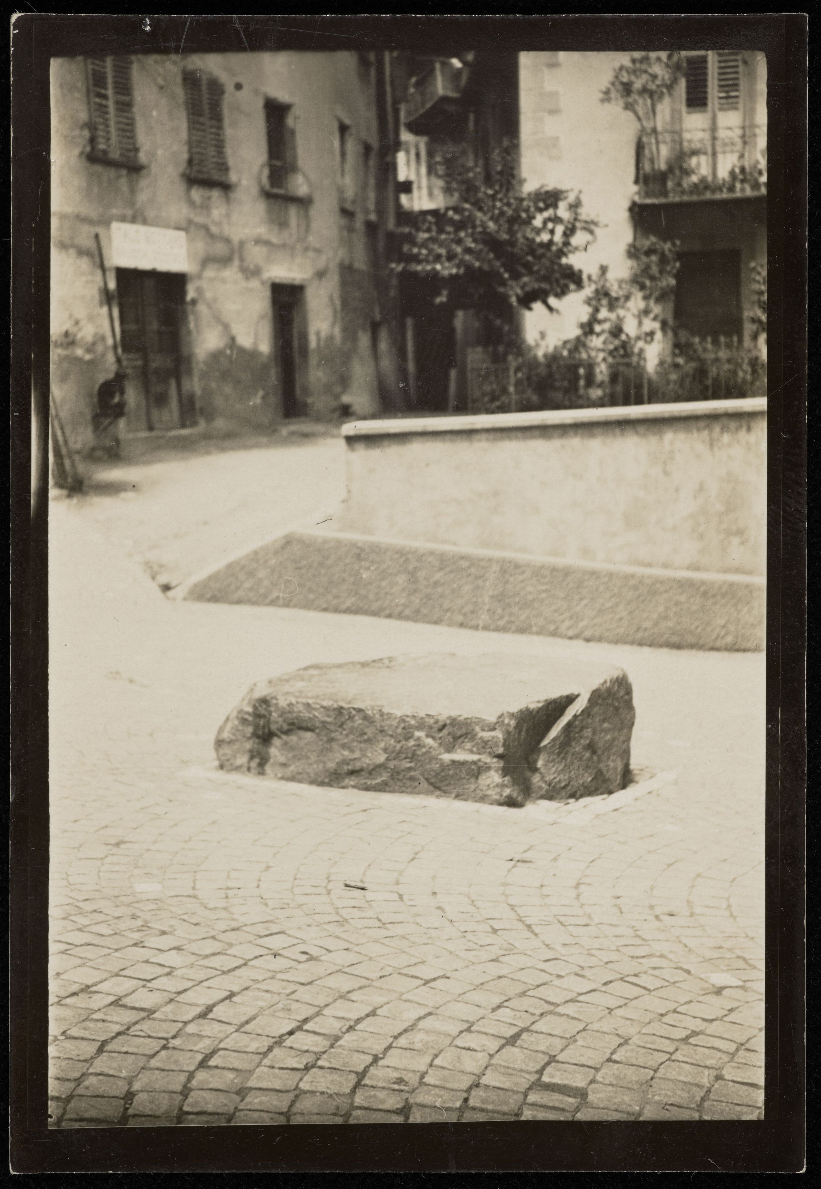 [Stein auf einem Platz umgeben von Setzsteinen]
