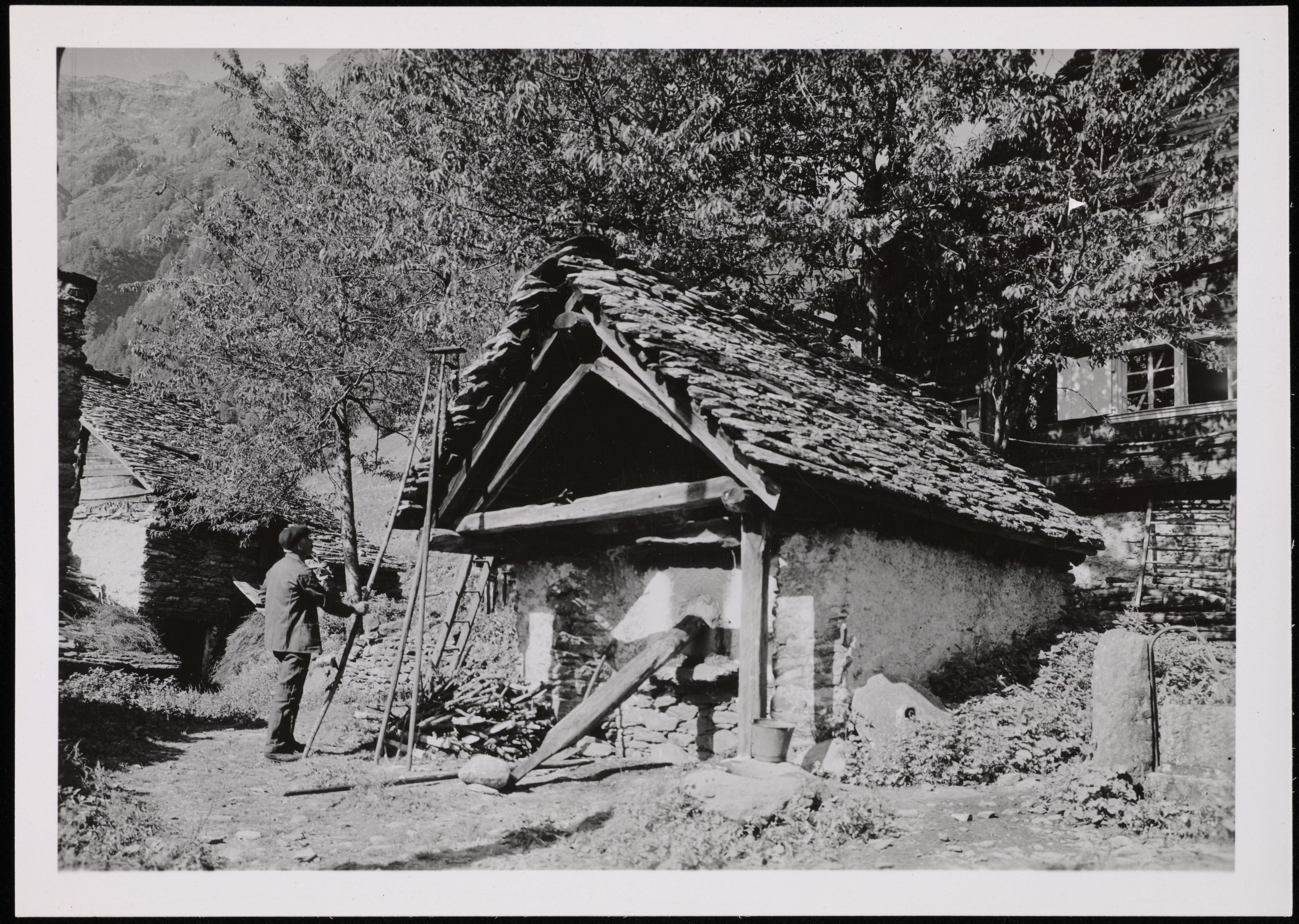 [Mann vor einem Unterstand]