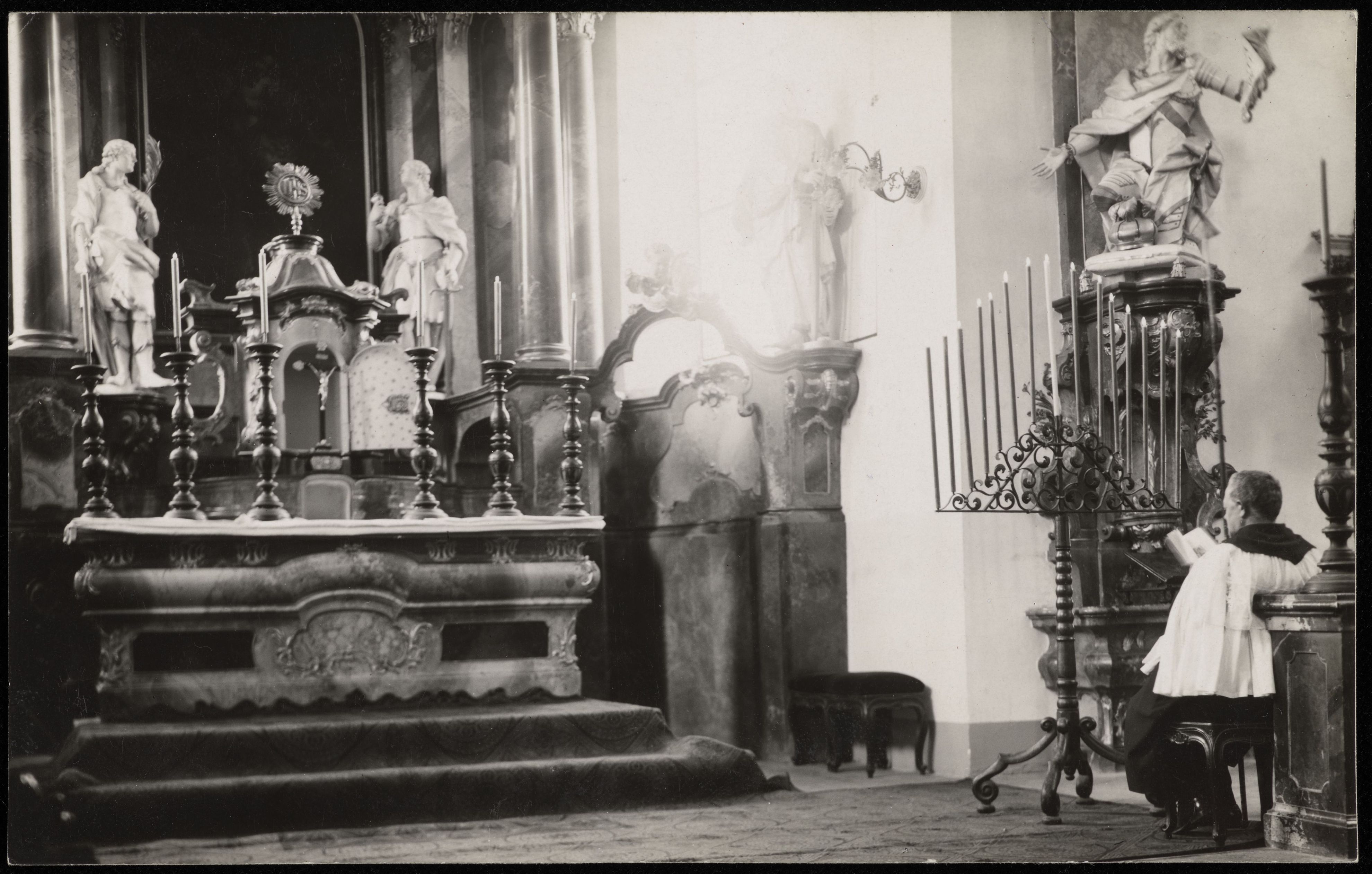 [Kirche von innen mit grossen Kerzenständer]