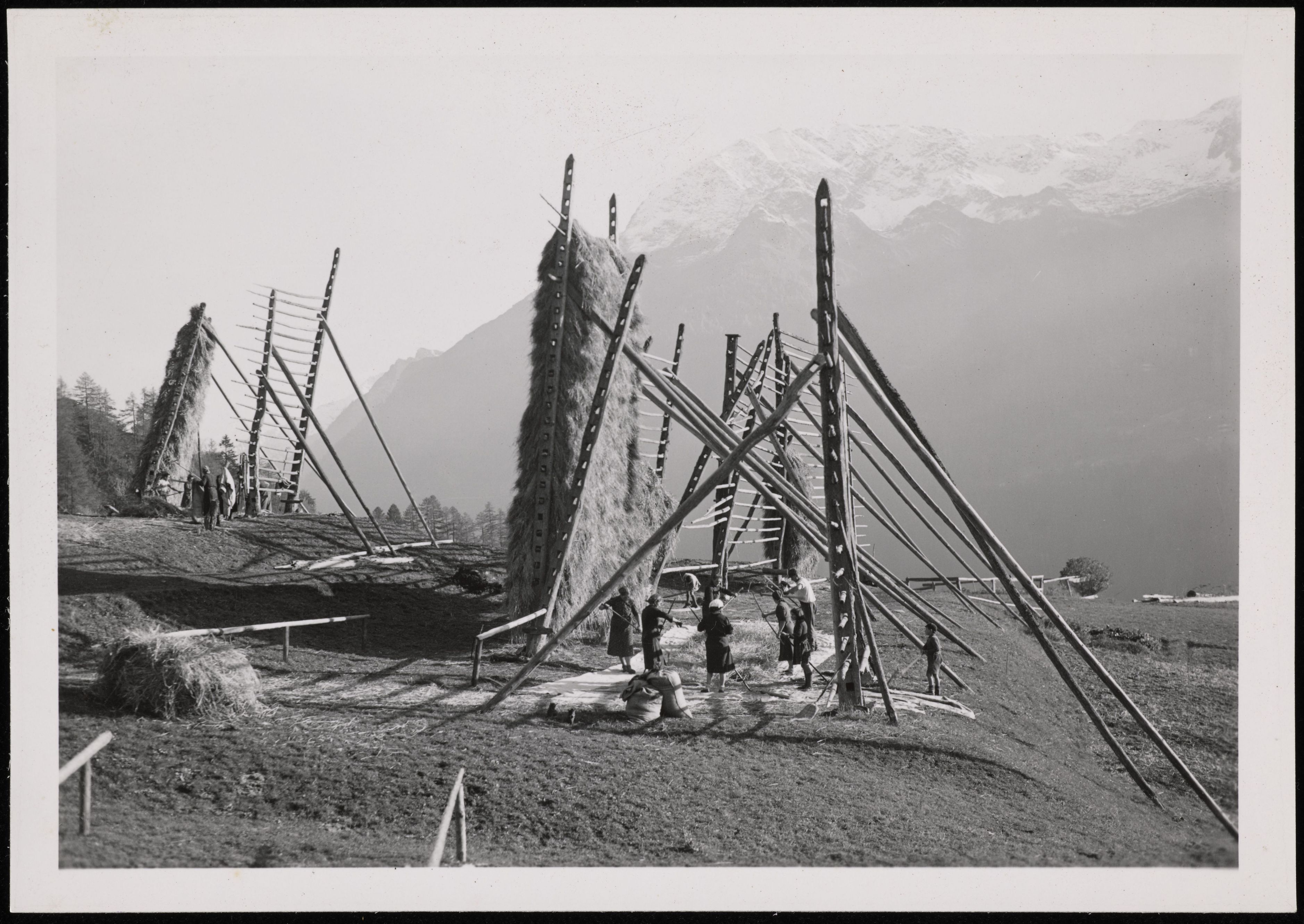 [Hölzerne Heuraufe zum Trocknen]