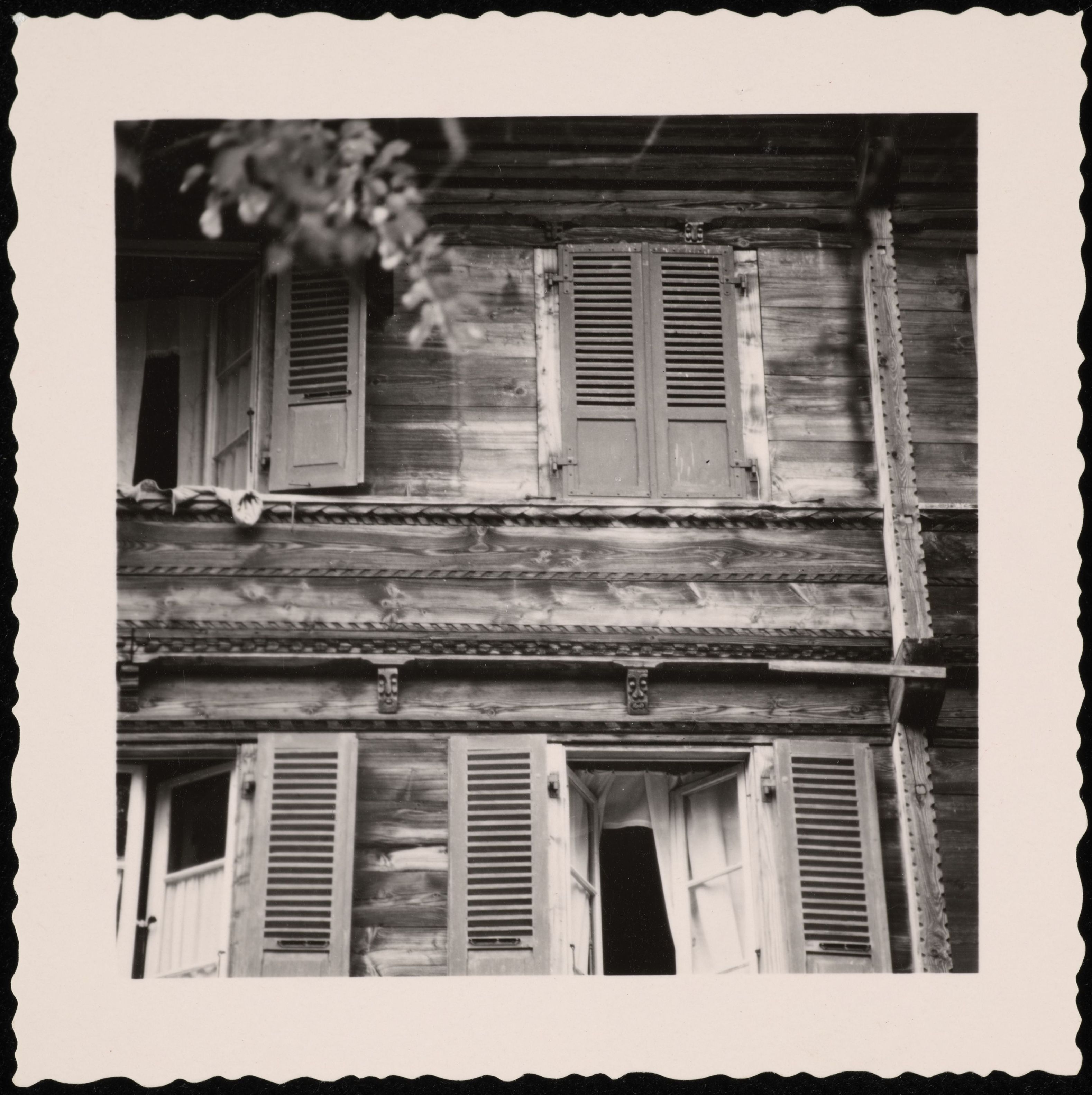 [Nahaufnahme der Verzierung der Holzfassade]