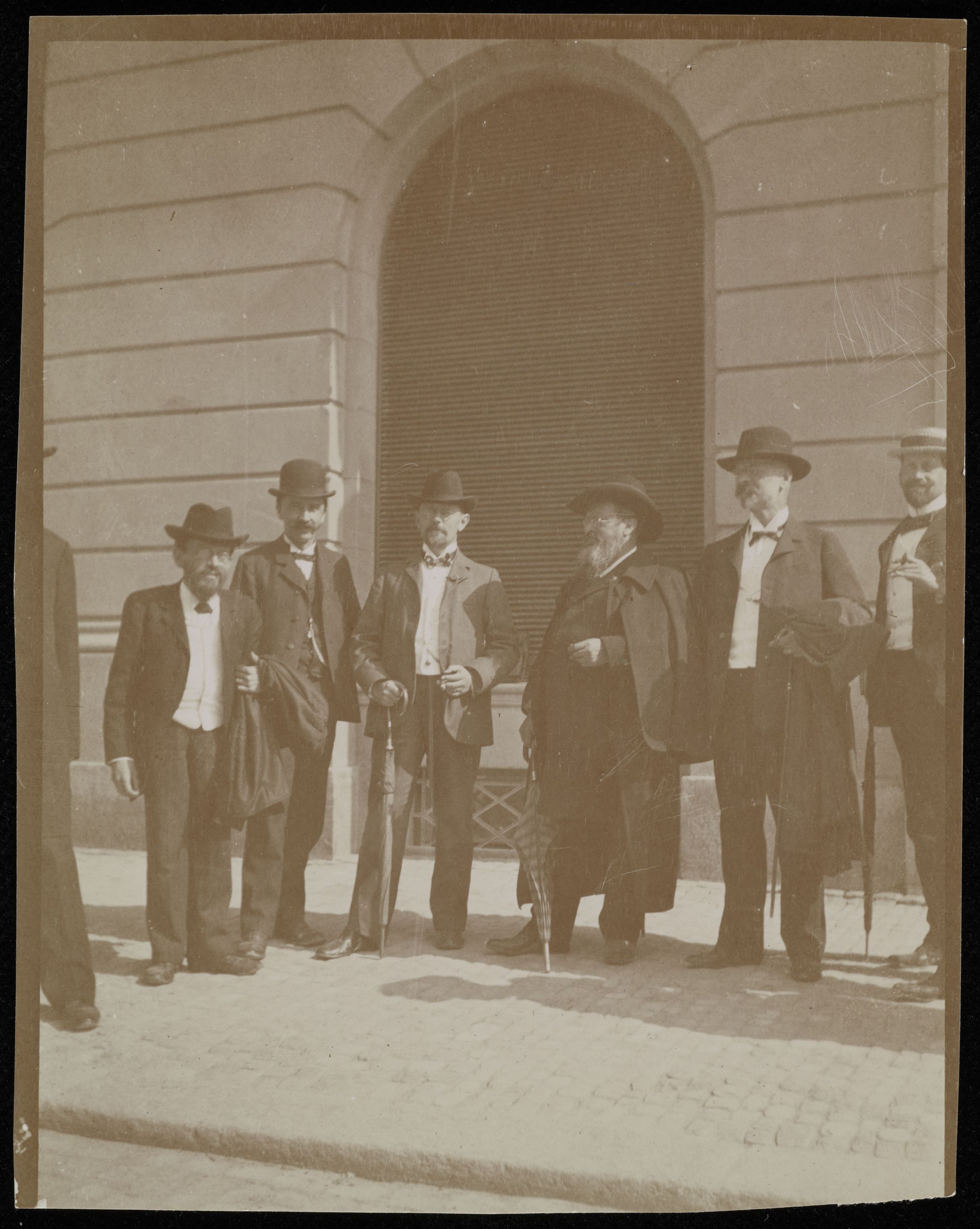 [Herren vor Gebäude 1926 Volkskunde (unleserlich)]